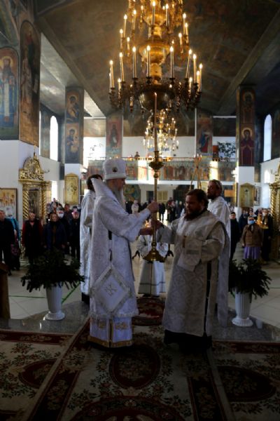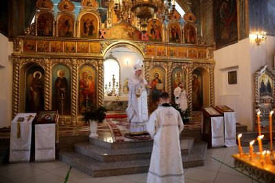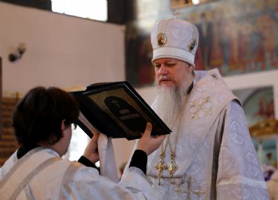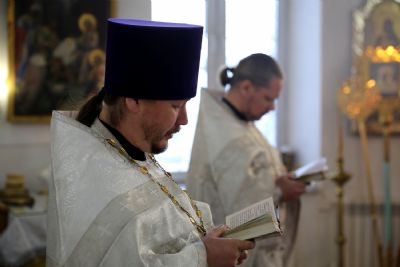 Владыке сослужило духовенство храма, песнопения исполняли певчие Архиерейского хора под управлением Тимофея Протасова. После входа с Евангелием были прочитаны паремии праздника.