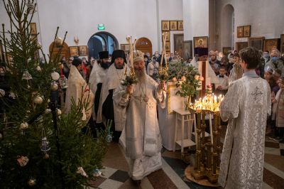 После богослужения Владыка обратился к собравшимся с проповедью: «Слава в вышних Богу! Вот прошло уже более двух тысячелетий, как этот ангельский благовест пробуждает вселенную, возвещая о Рождестве Спасителя. Эта весть неумолкаемо звучит каждый год, пробуждая сердца человеческие, побуждая каждого прийти к Богомладенцу-Христу и принести Ему дары – чистое сердце, ум, направленный к постижению Божественной Истины, дела любви и милосердия.
