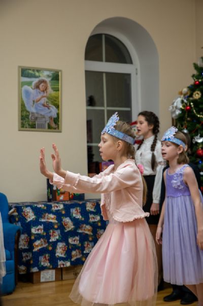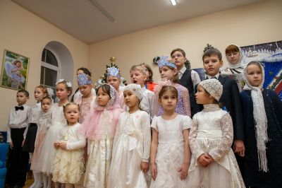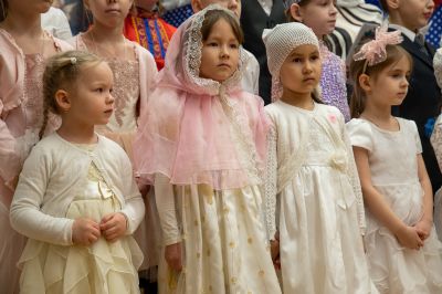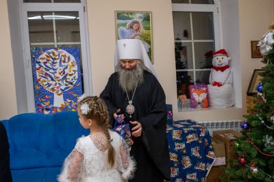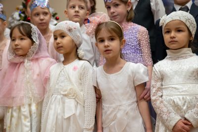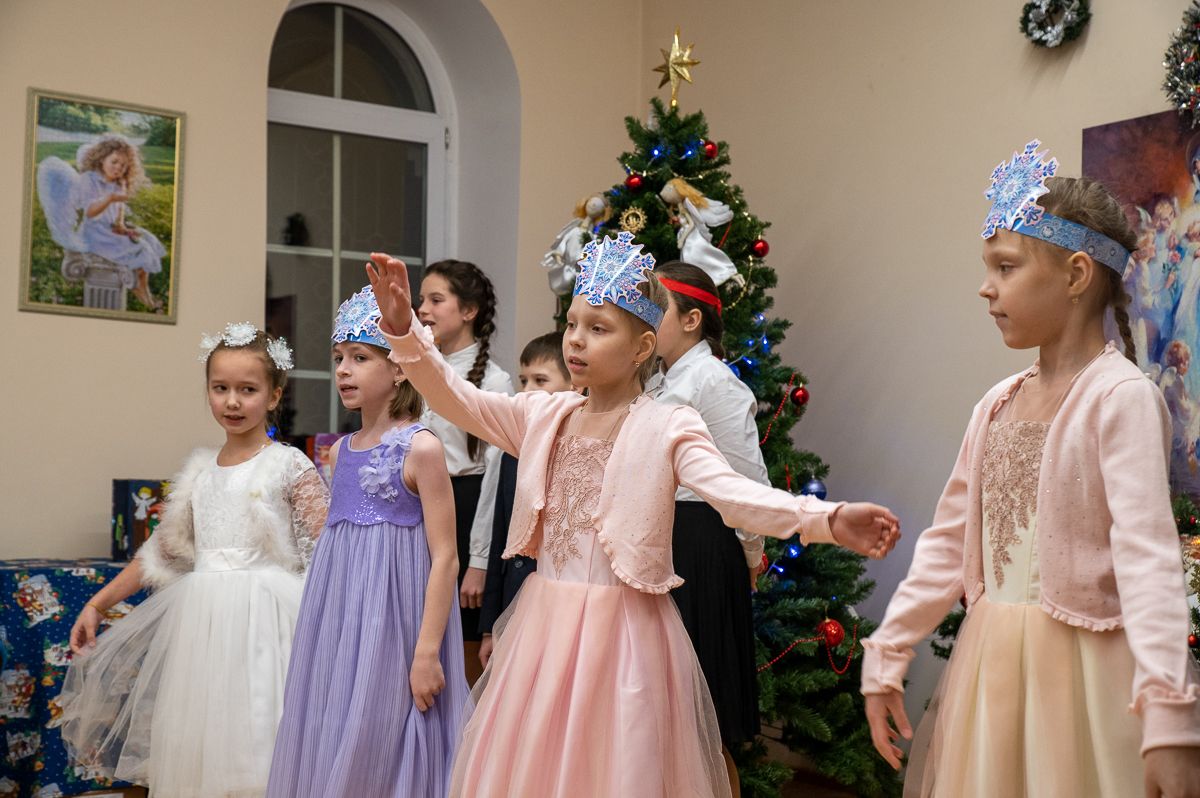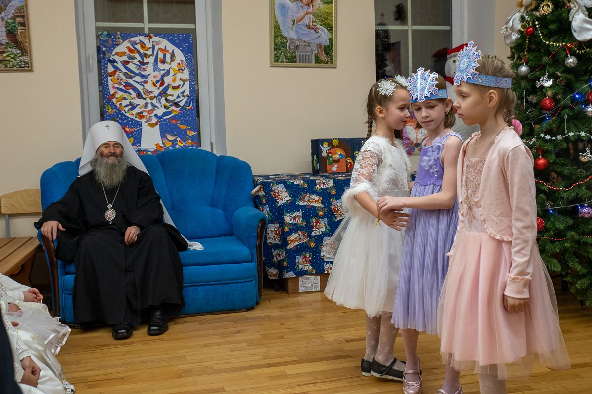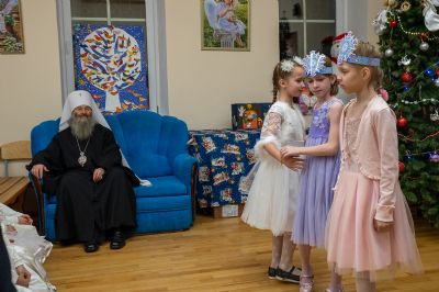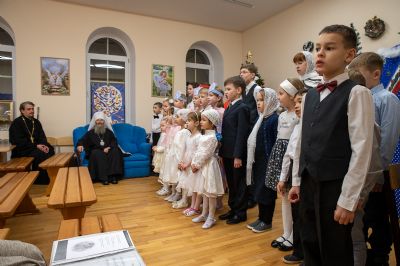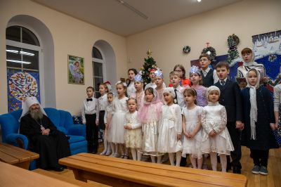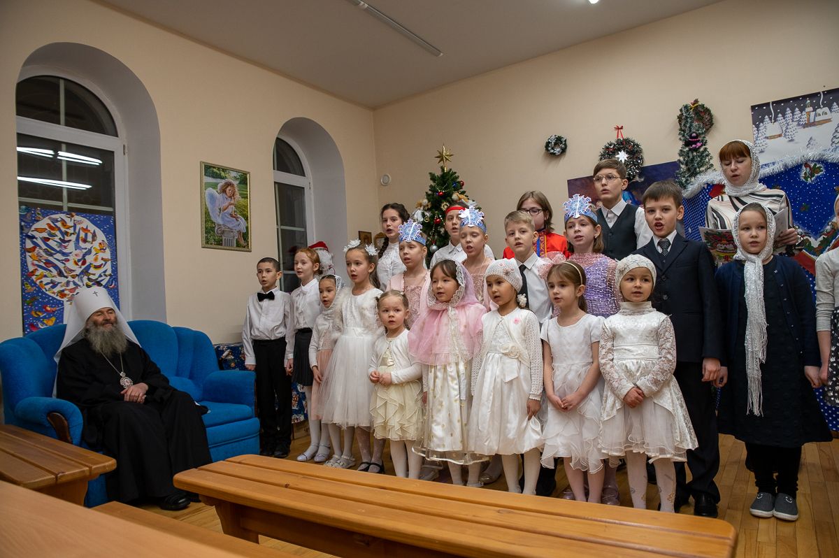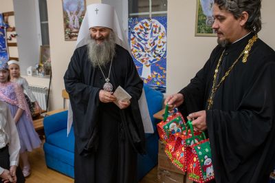 В завершение вечера воспитанники воскресной школы храма выступили перед священнослужителями с рождественским концертом, а митрополит Иоанн вручил детям сладкие подарки.