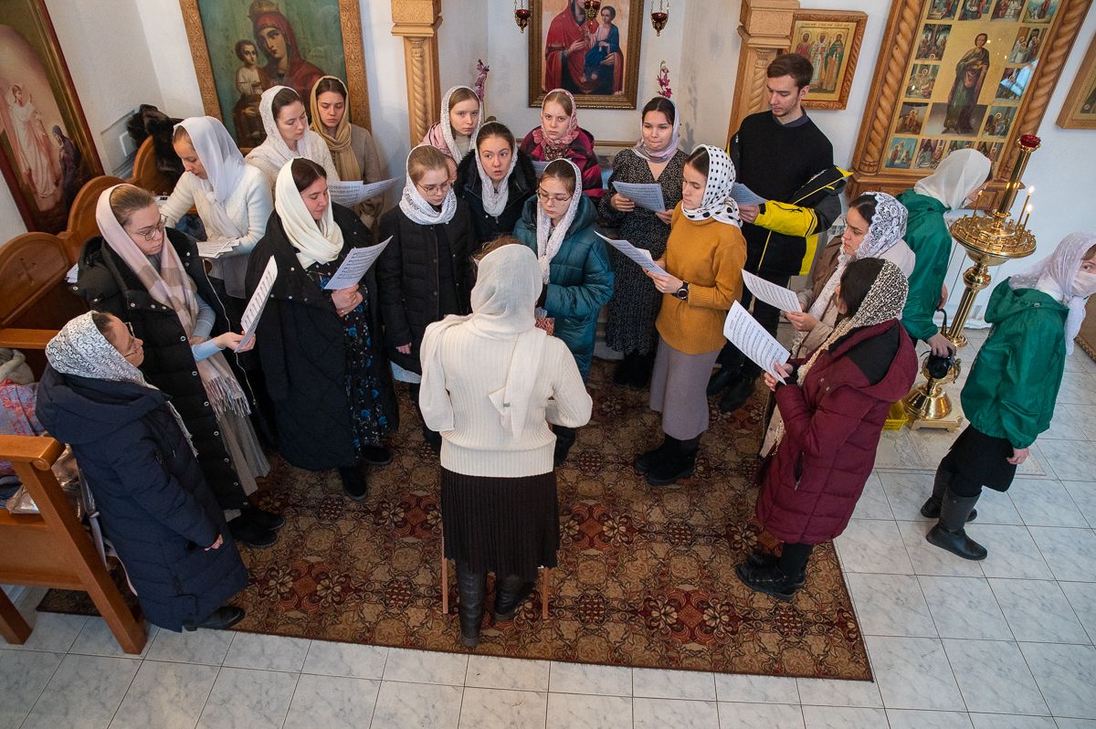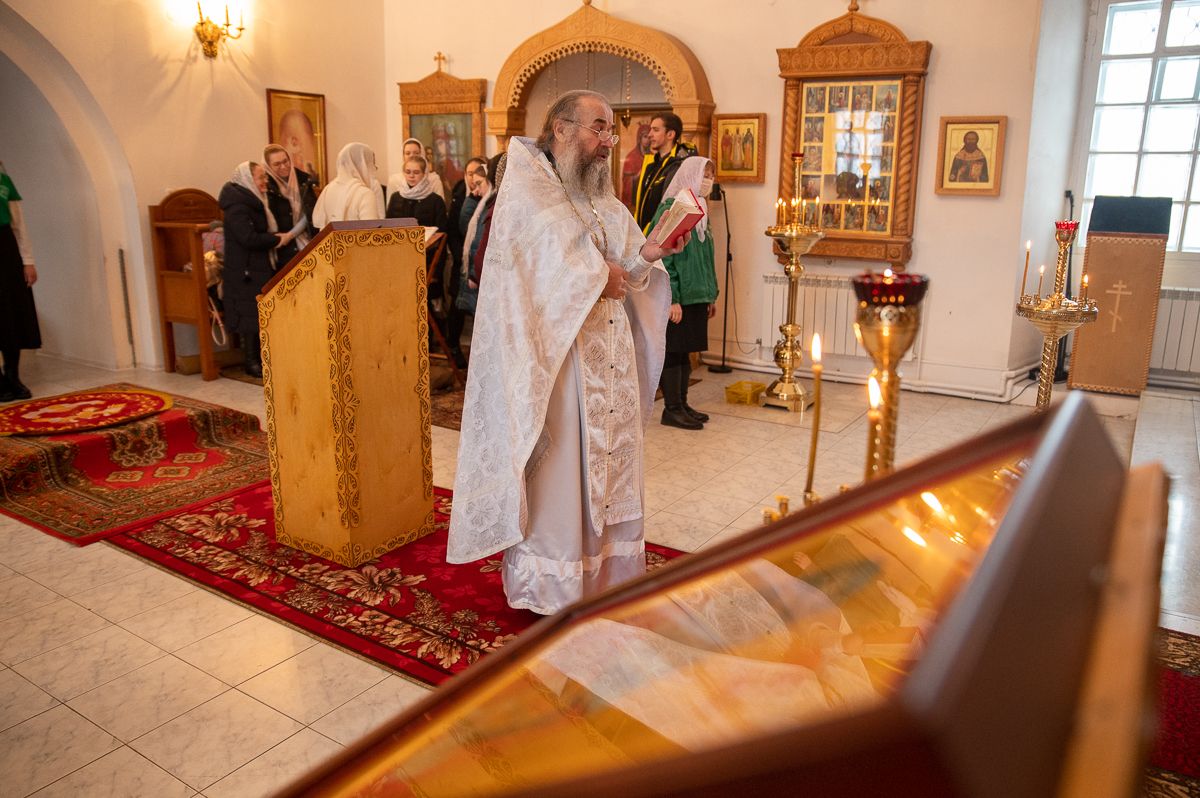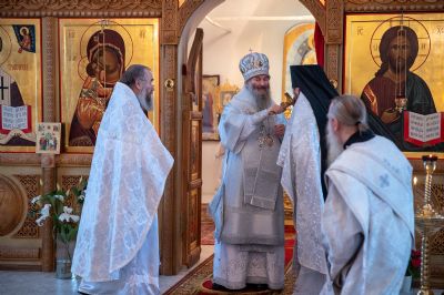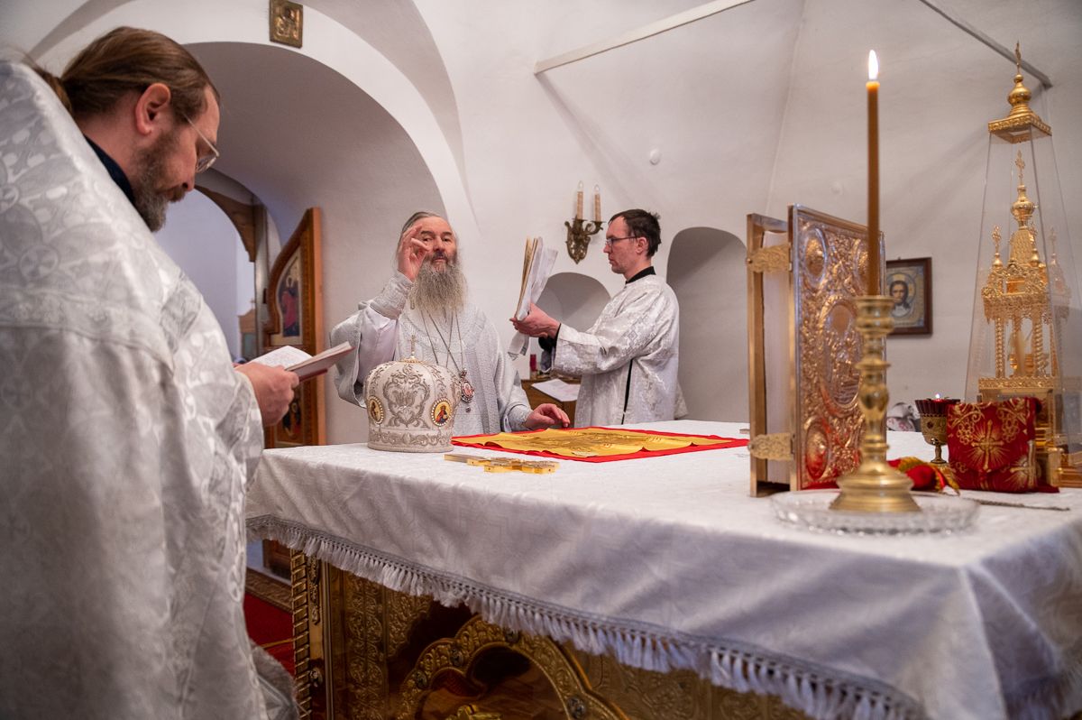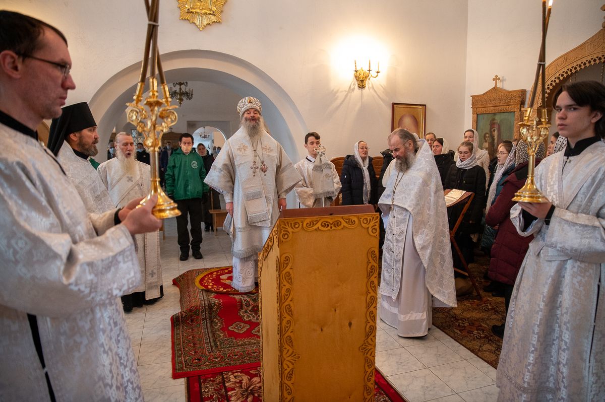 Владыке сослужили секретарь Йошкар-Олинского епархиального управления иеромонах Серафим (Пасанаев), клирик монастыря иерей Михаил Лежнин и клирик храма Рождества Пресвятой Богородицы с. Семеновка протодиакон Михаил Козловский. Песнопения исполнял детско-юношеский хор «Благовест» под управлением регента Татьяны Черновой.