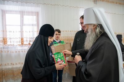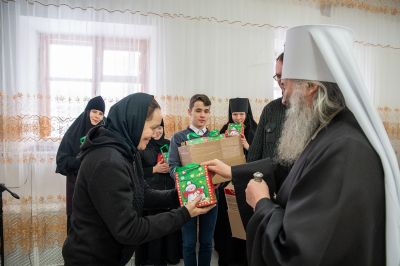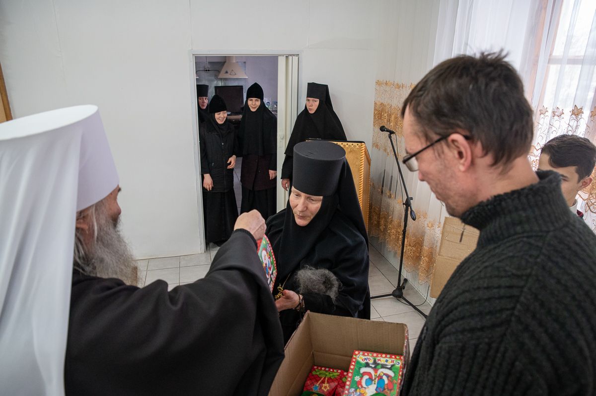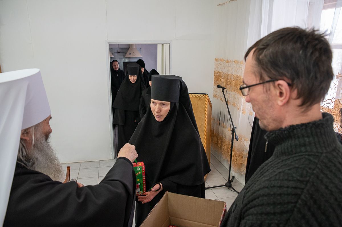 В завершение владыка Иоанн поздравил с Рождеством Христовым насельниц монастыря и вручил им сладкие подарки.