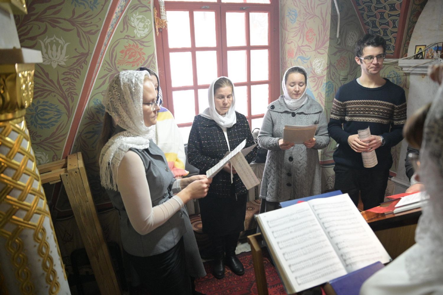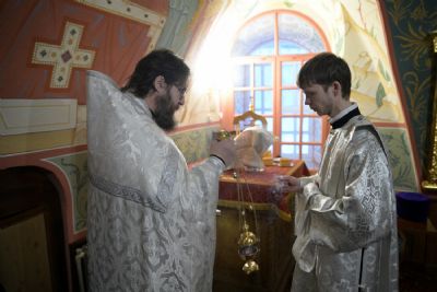 Его Высокопреосвященству сослужили секретарь Йошкар-Олинского епархиального управления иеромонах Серафим (Пасанаев), благочинный Йошкар-Олинского церковного округа протоиерей Андрей Норкин, настоятель Вознесенского собора протоиерей Евгений Кутырев, клирики Вознесенского собора иерей Владимир Глебов, диаконы Сергий Метелев, Владимир Лихачев и клирик храма Рождества Пресвятой Богородицы с. Семеновка протодиакон Михаил Козловский. Песнопения исполнял хор Троицкого храма под руководством регента Анны Ярошевич.