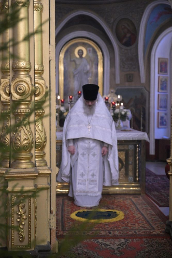 Его Высокопреосвященству сослужили ключарь храма протоиерей Михаил Ильин, клирики храма протоиерей Павел Матвеев, иереи Сергий Асланов, Димитрий Иванов, протодиакон Михаил Козловский. Песнопения исполнял хор храма.
