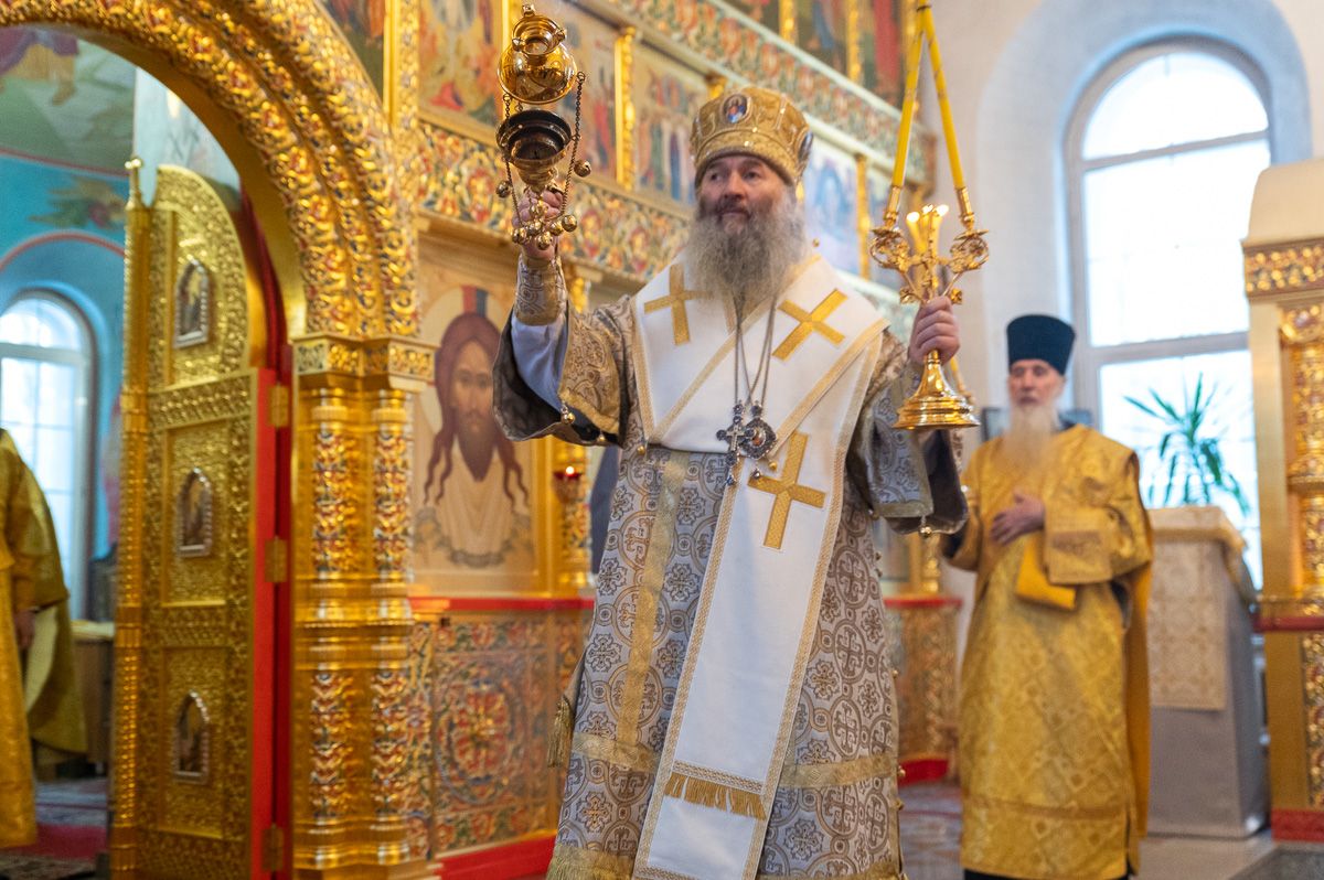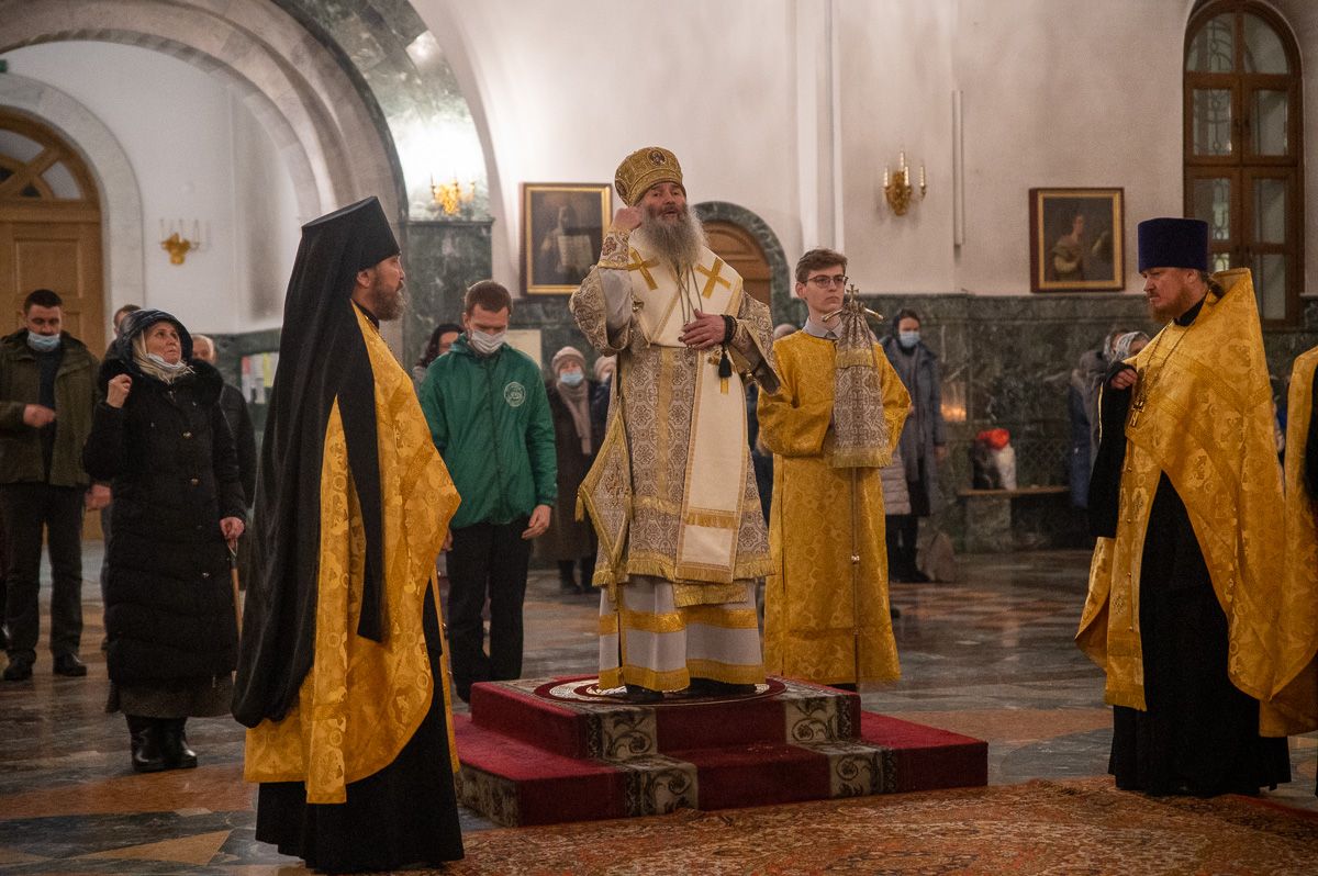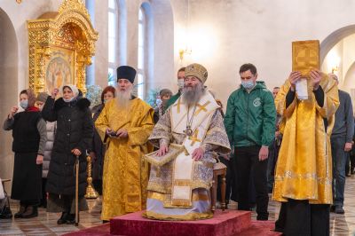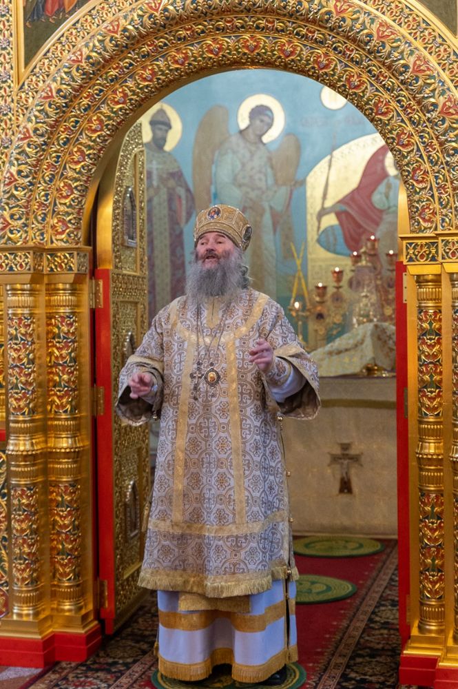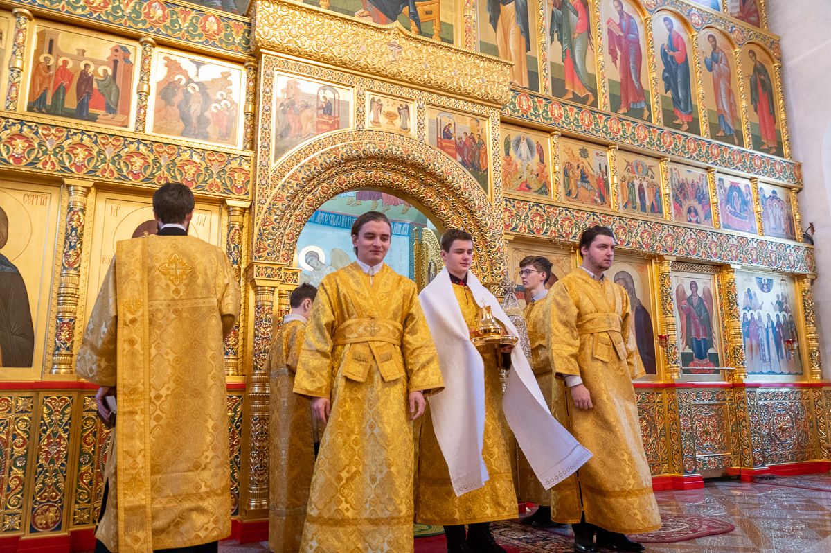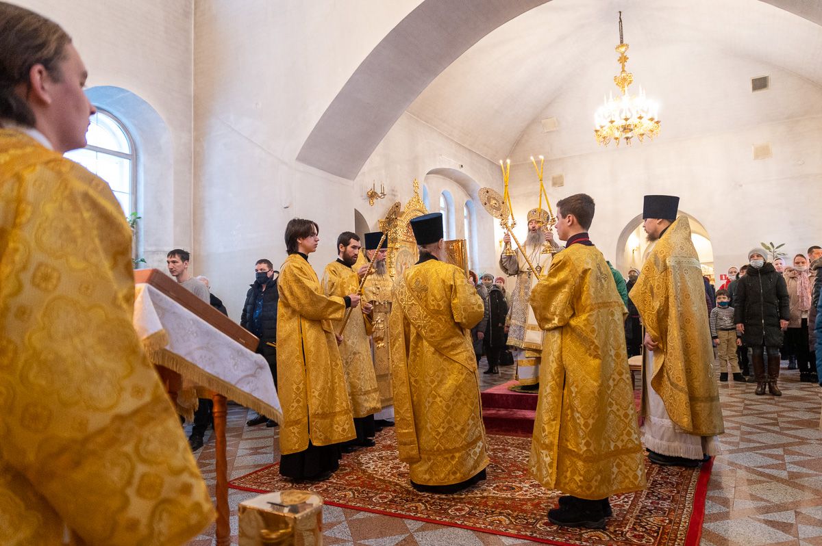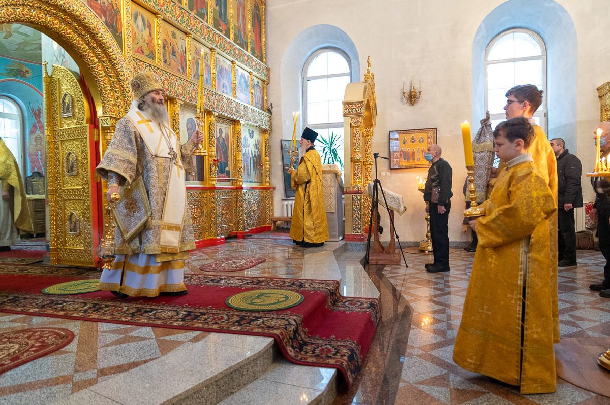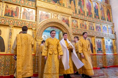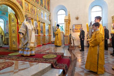 За Литургией архипастырю сослужили настоятель Серафимовского храма протоиерей Александр Бачурин, клирики храма иереи Константин Домрачев, диакон Иван Милютин и клирик храма Рождества Пресвятой Богородицы с. Семеновка протодиакон Михаил Козловский. Пел хор под управлением регента Елены Умрихиной.