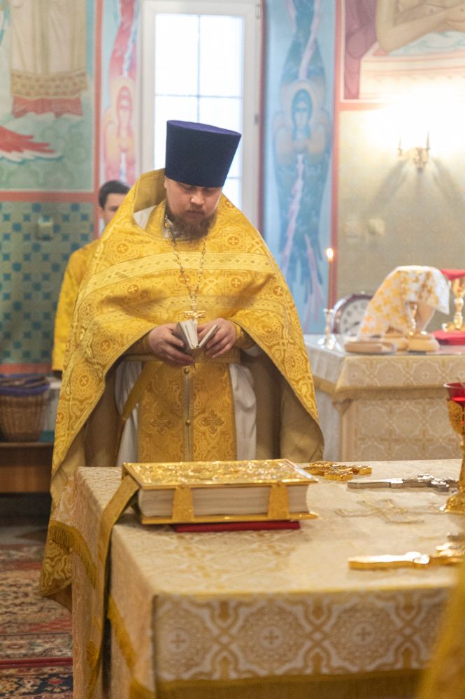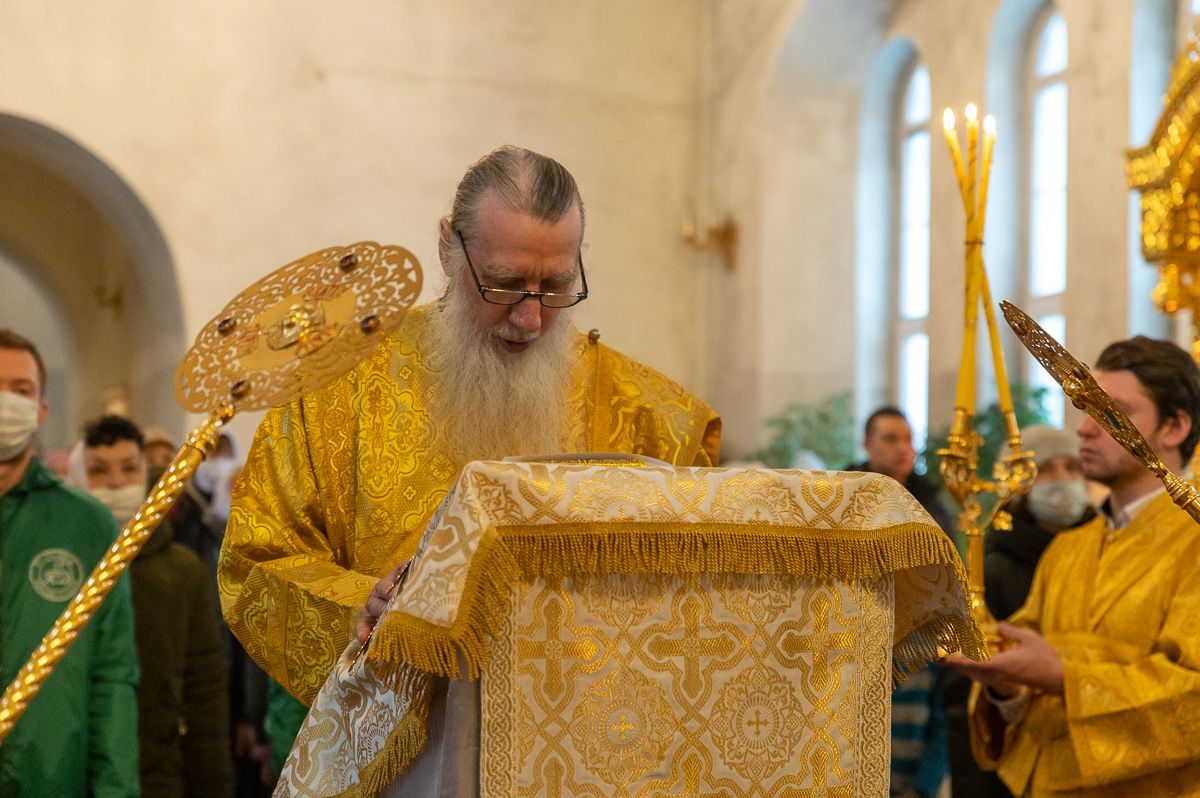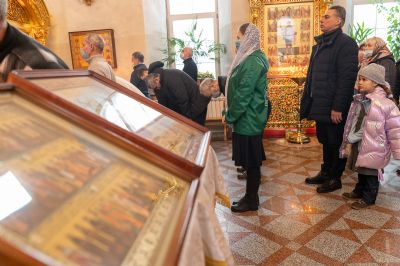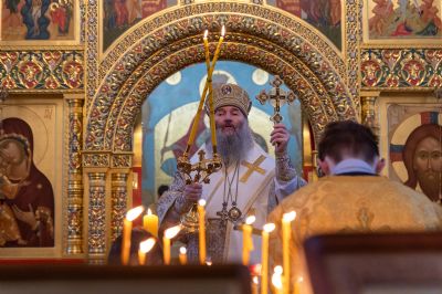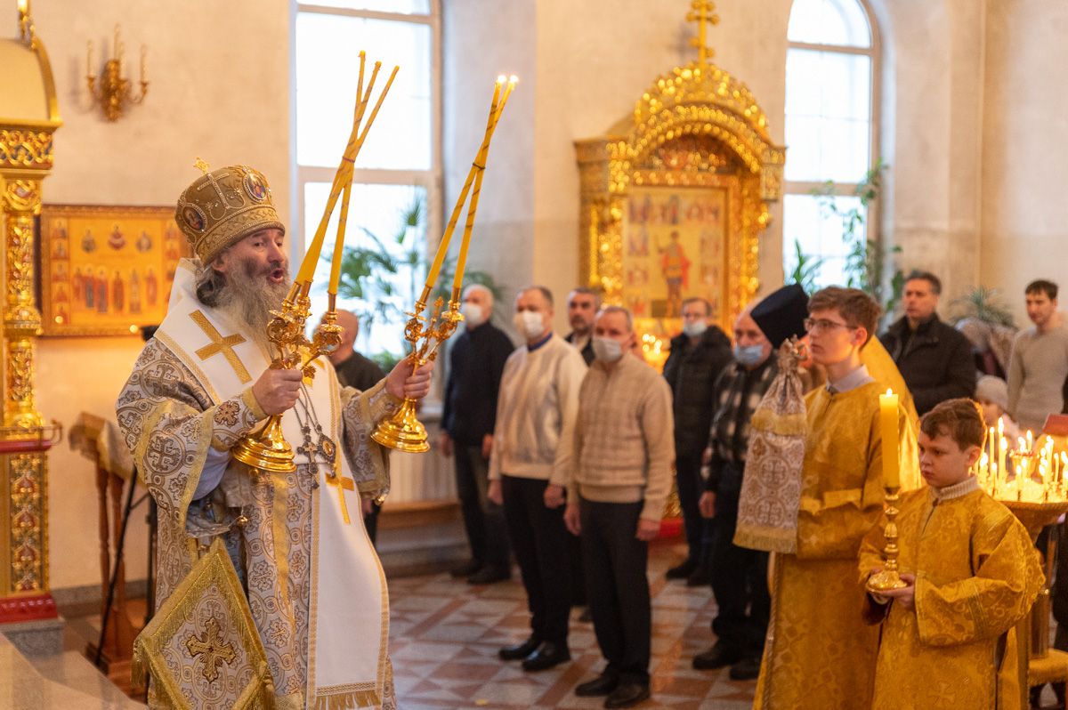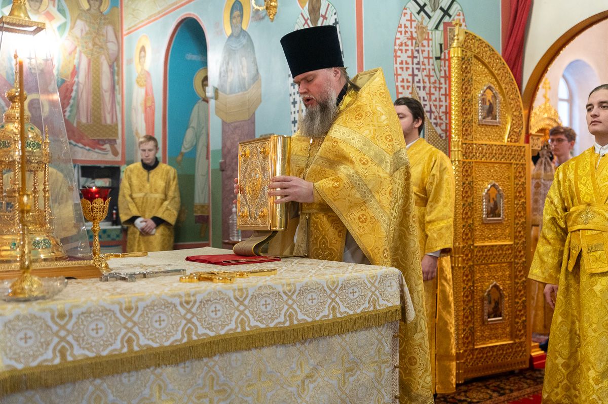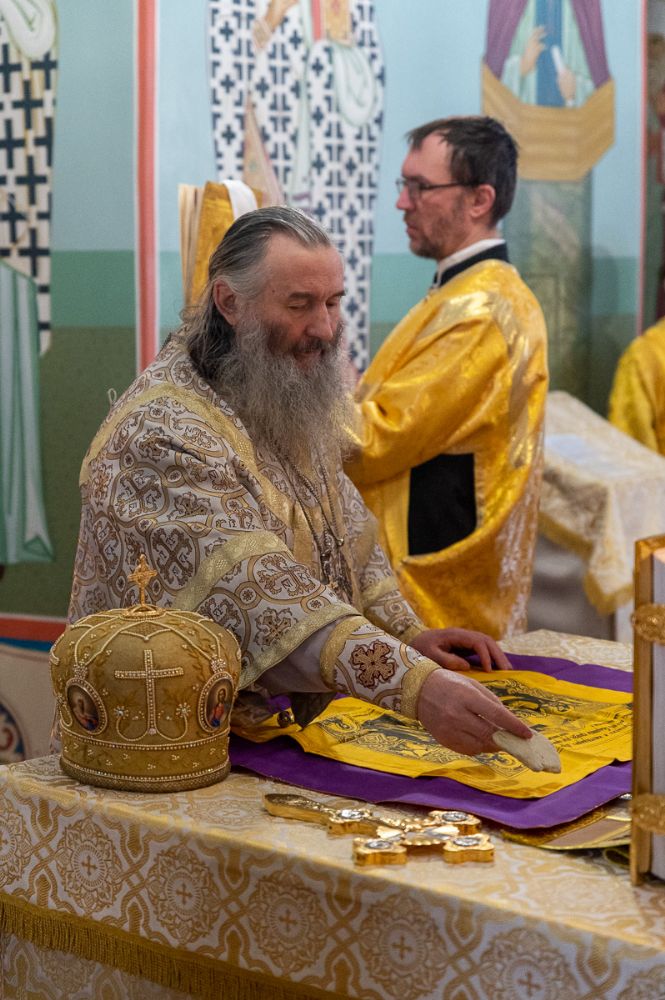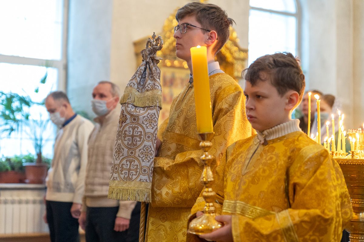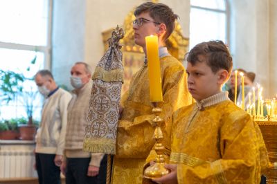 За Литургией архипастырю сослужили настоятель Серафимовского храма протоиерей Александр Бачурин, клирики храма иереи Константин Домрачев, диакон Иван Милютин и клирик храма Рождества Пресвятой Богородицы с. Семеновка протодиакон Михаил Козловский. Пел хор под управлением регента Елены Умрихиной.