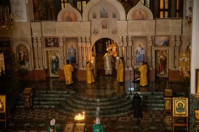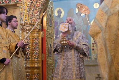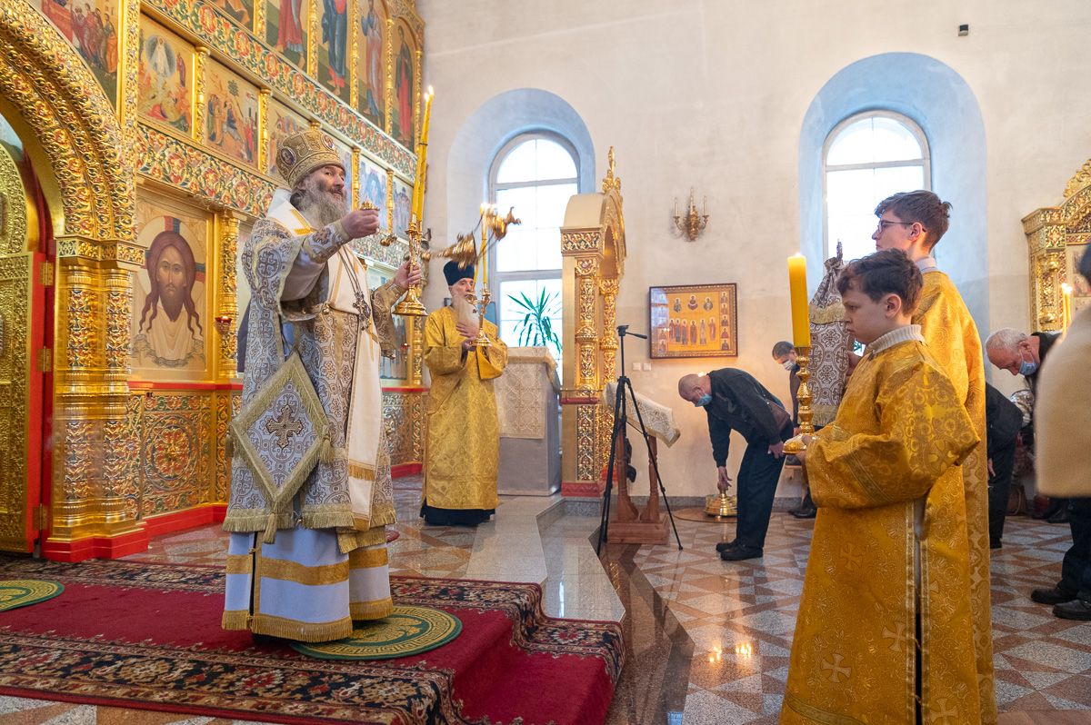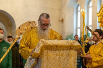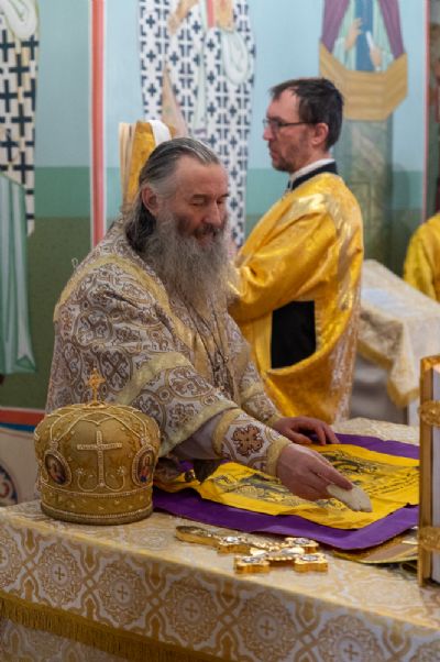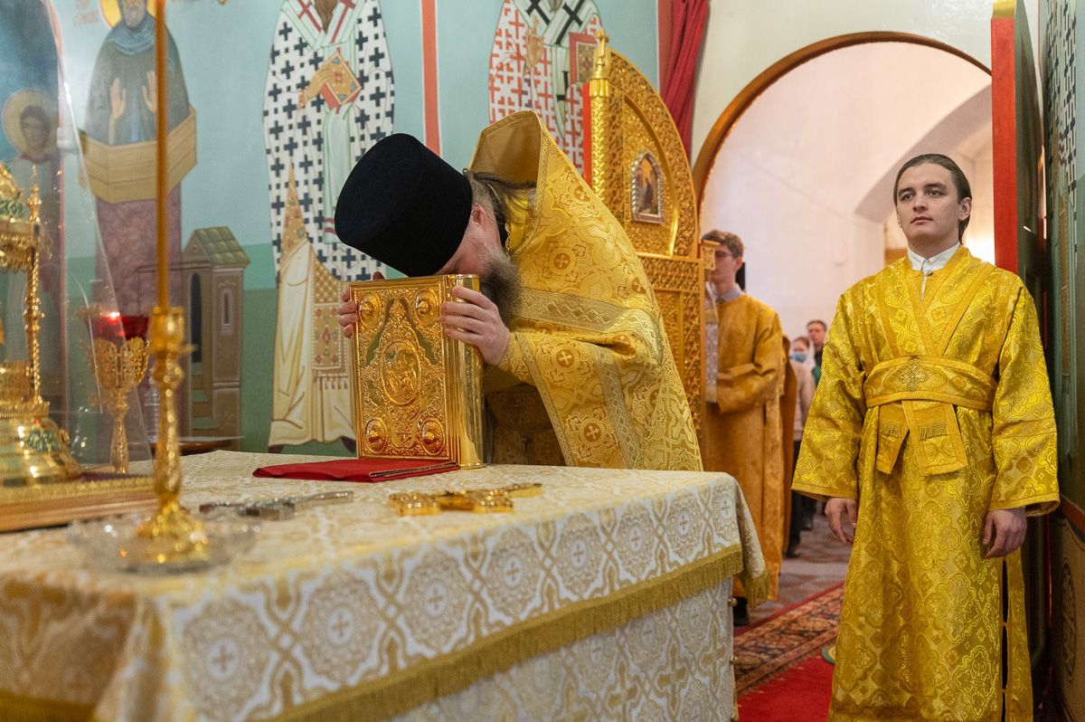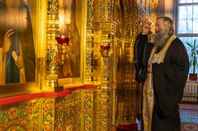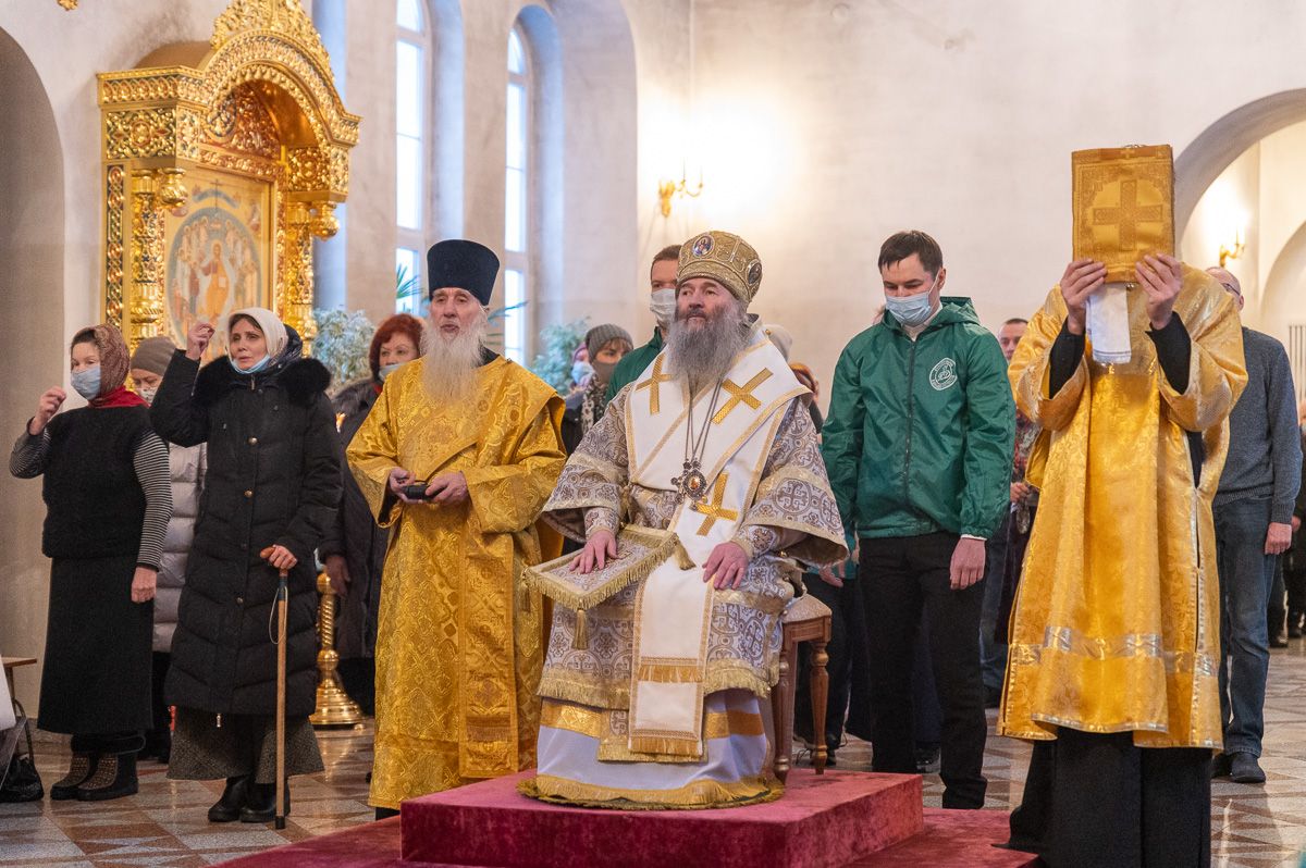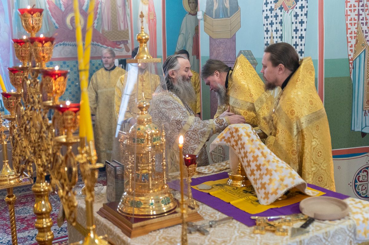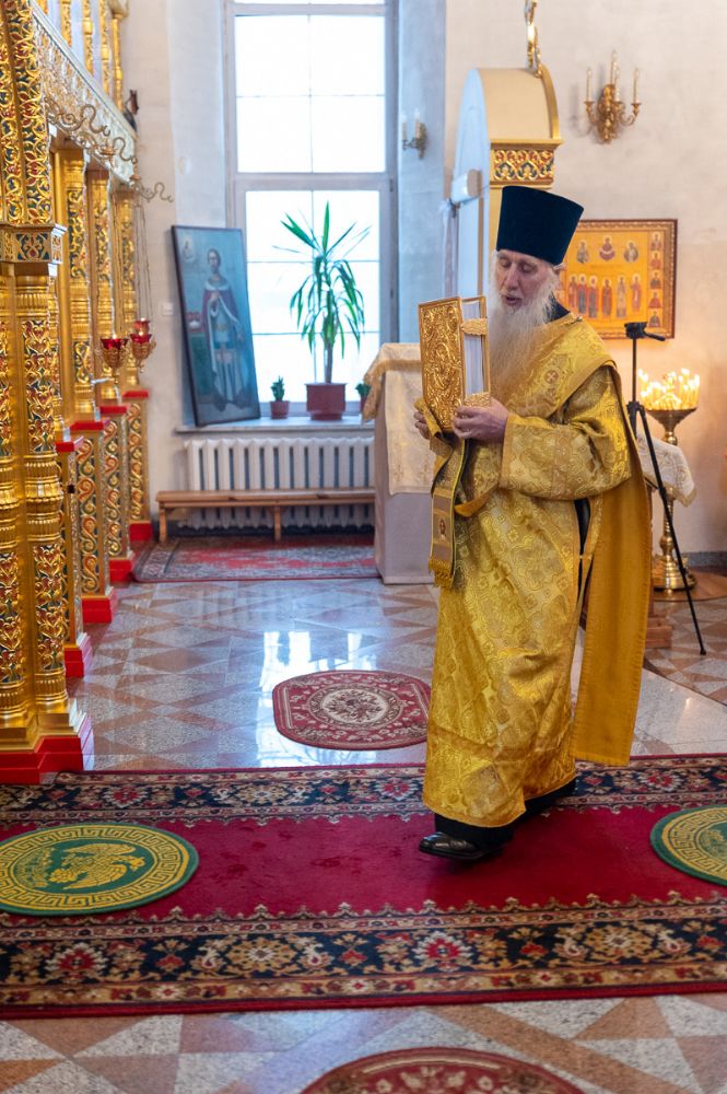 За Литургией архипастырю сослужили настоятель Серафимовского храма протоиерей Александр Бачурин, клирики храма иереи Константин Домрачев, диакон Иван Милютин и клирик храма Рождества Пресвятой Богородицы с. Семеновка протодиакон Михаил Козловский. Пел хор под управлением регента Елены Умрихиной.