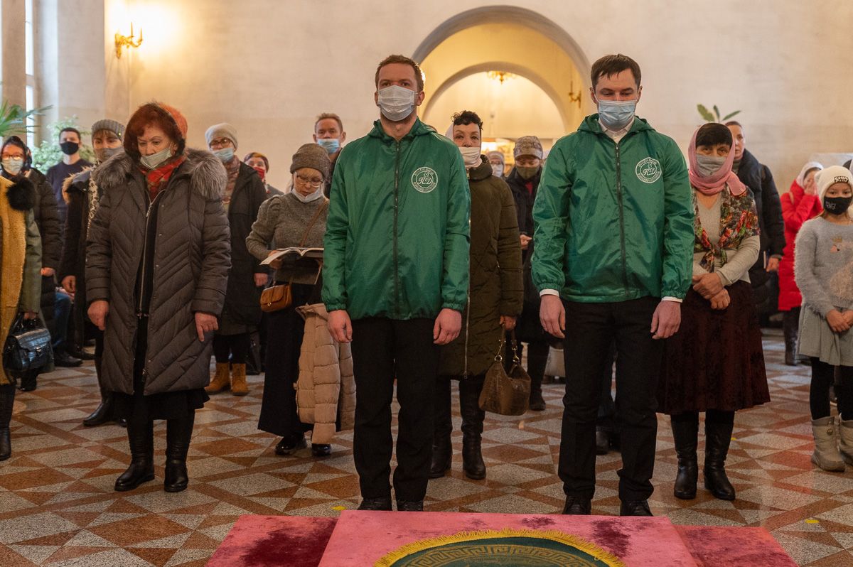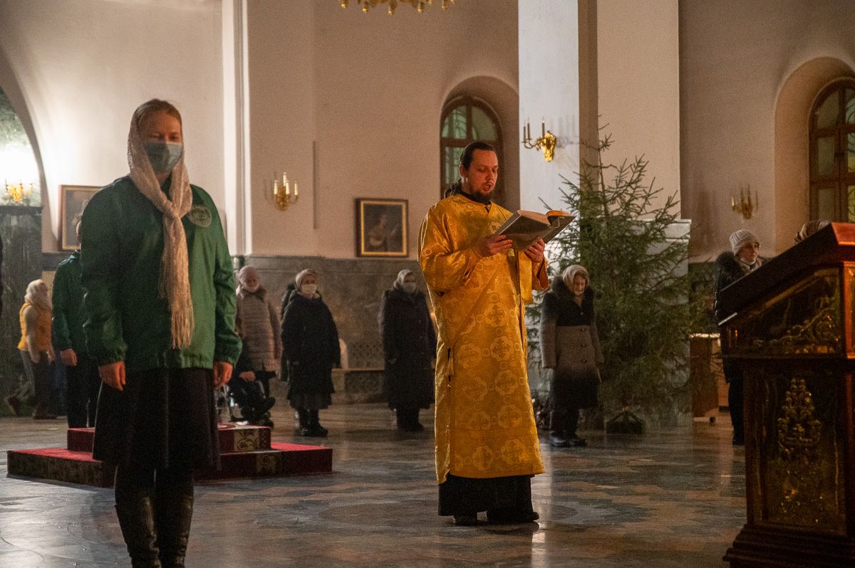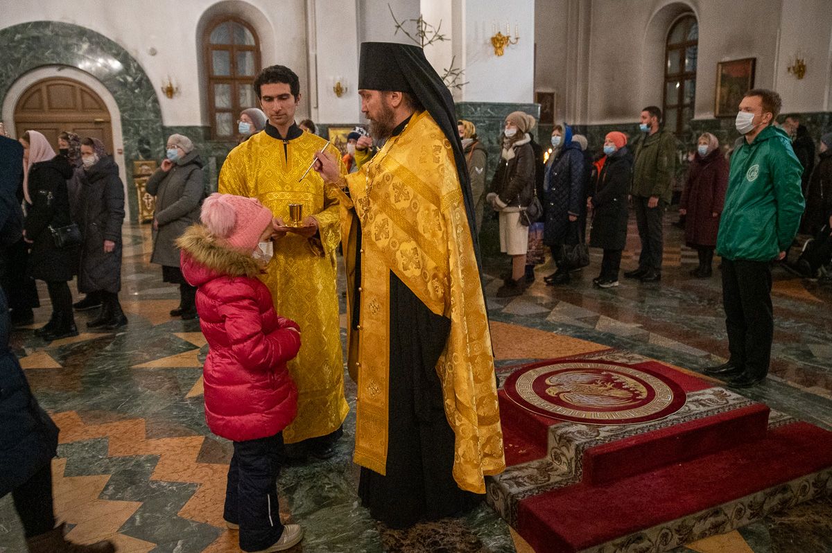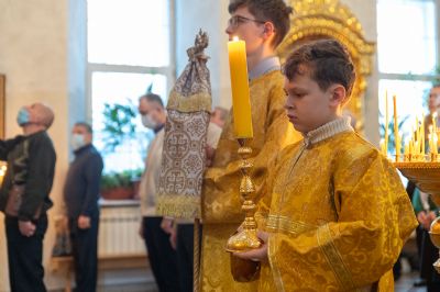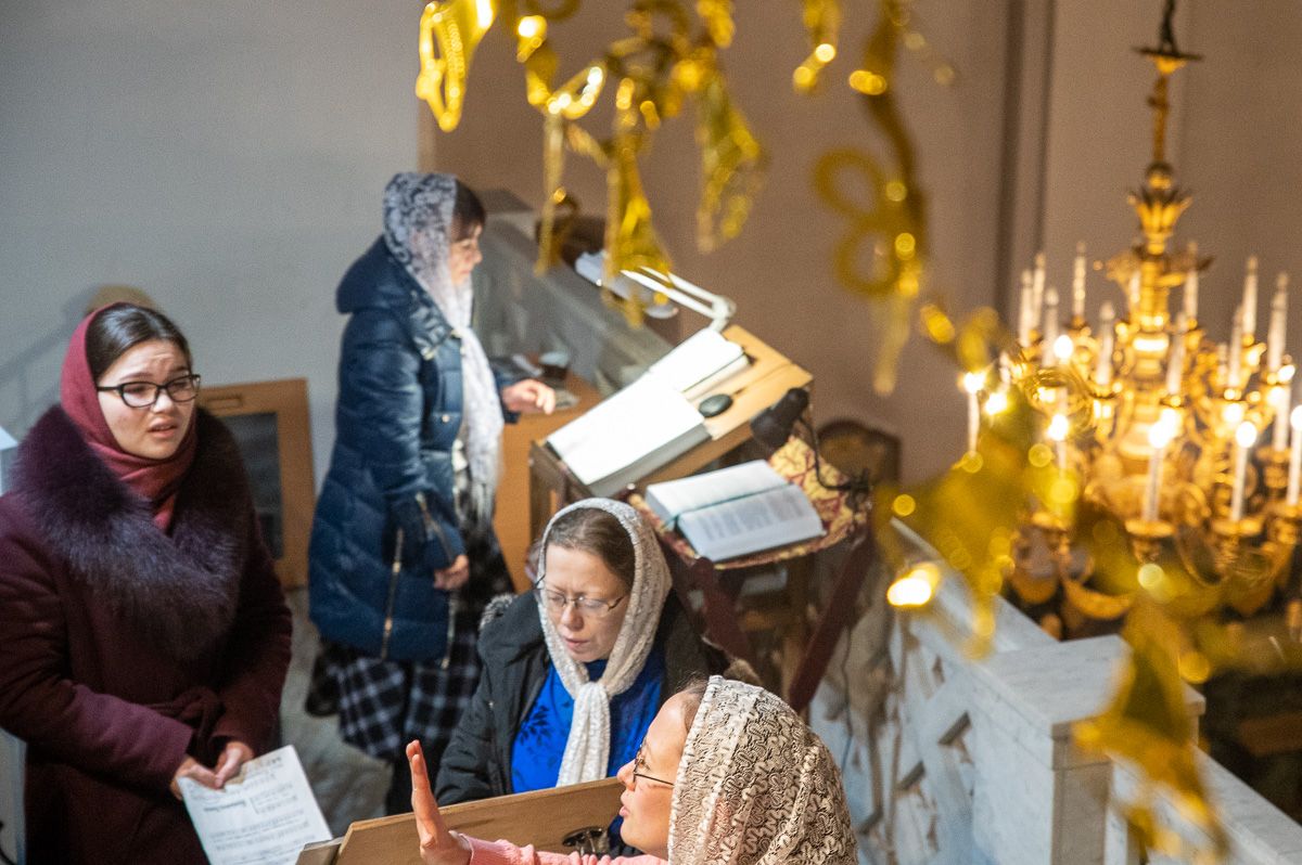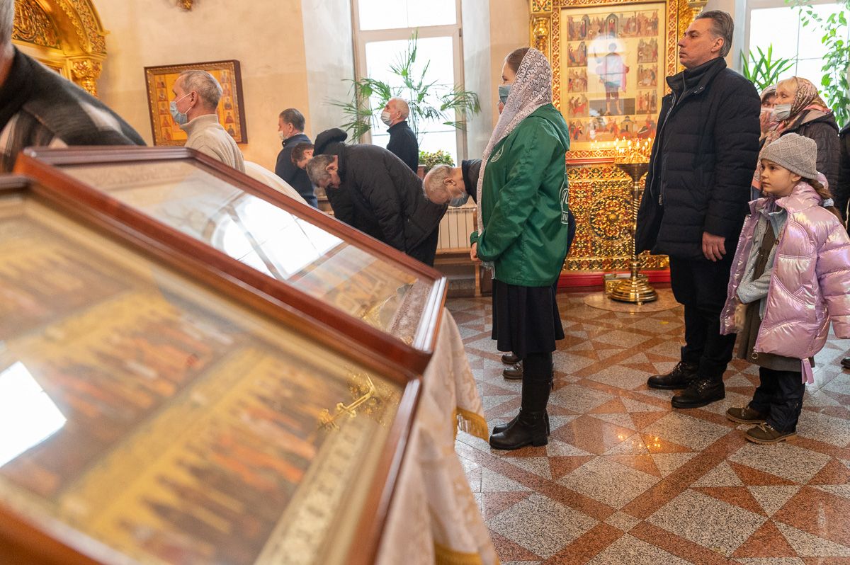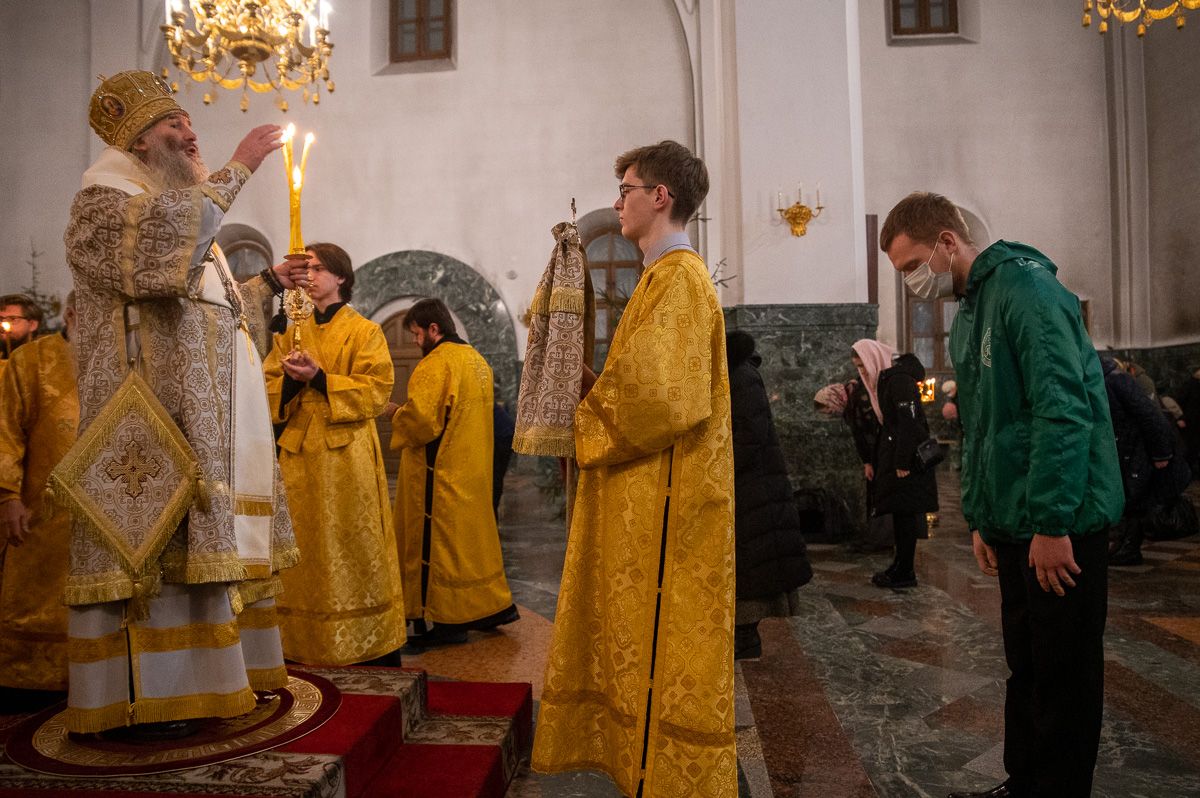 За Литургией архипастырю сослужили настоятель Серафимовского храма протоиерей Александр Бачурин, клирики храма иереи Константин Домрачев, диакон Иван Милютин и клирик храма Рождества Пресвятой Богородицы с. Семеновка протодиакон Михаил Козловский. Пел хор под управлением регента Елены Умрихиной.