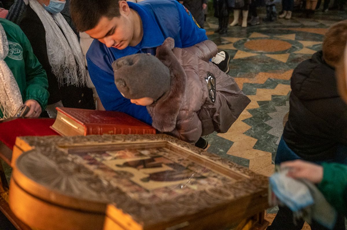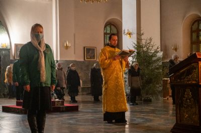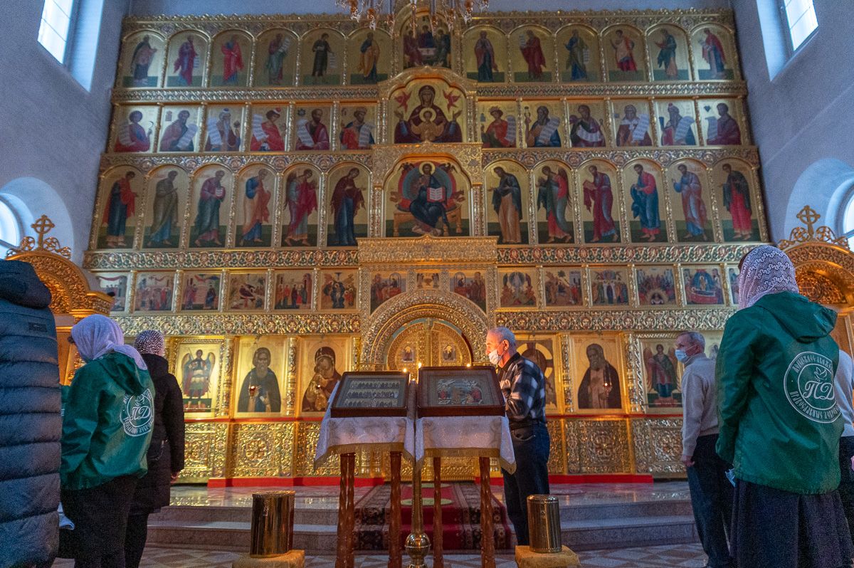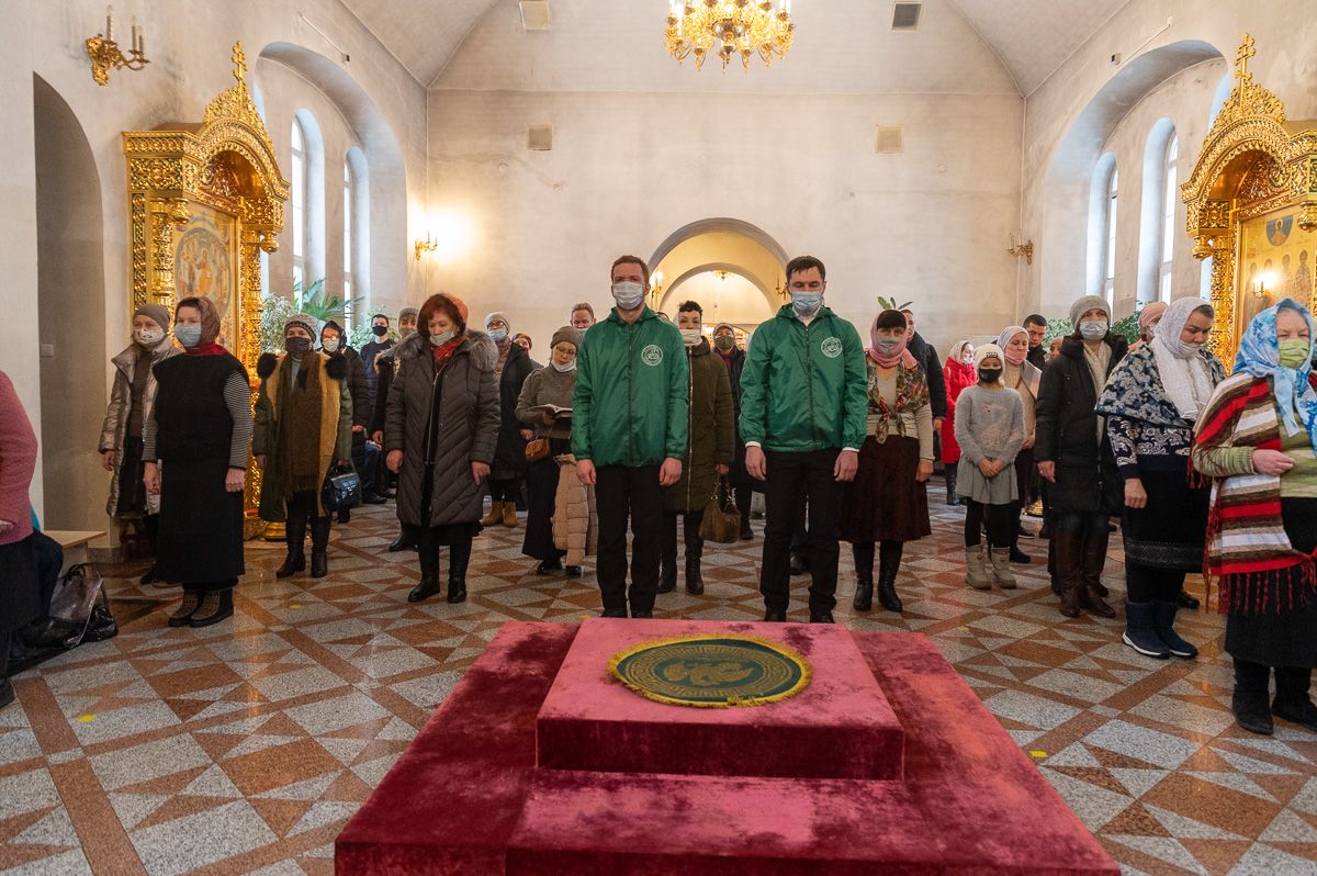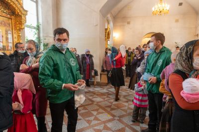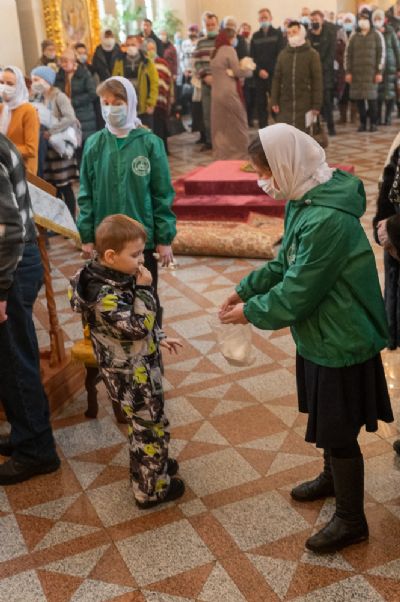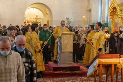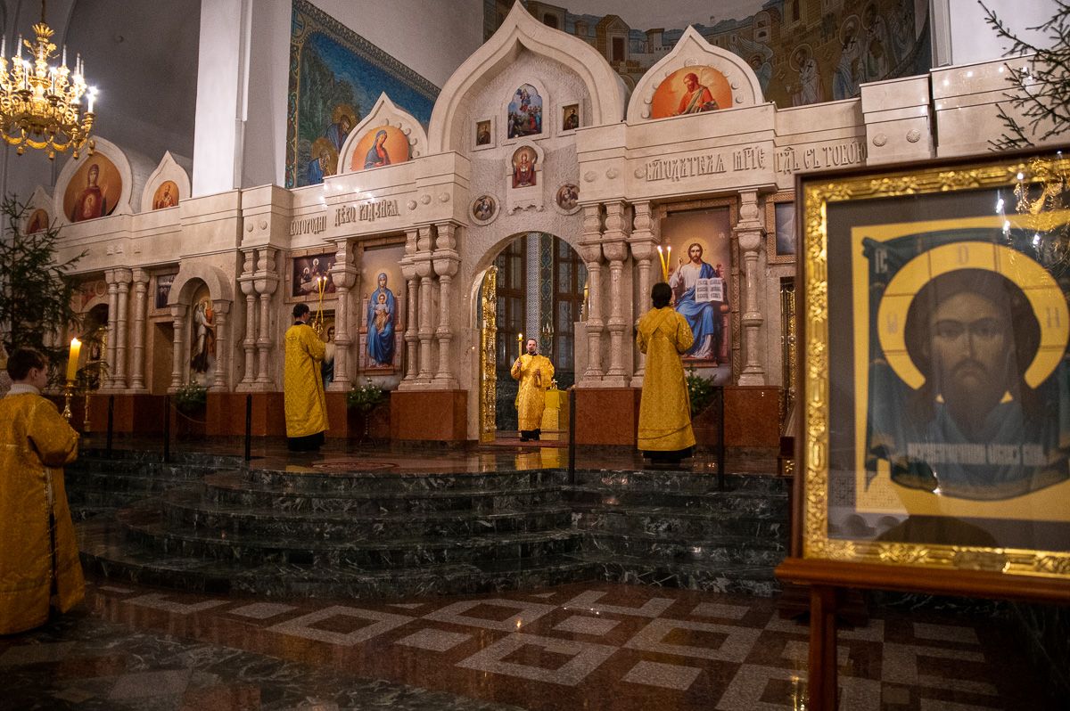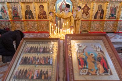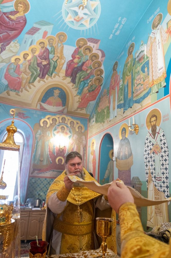 За Литургией архипастырю сослужили настоятель Серафимовского храма протоиерей Александр Бачурин, клирики храма иереи Константин Домрачев, диакон Иван Милютин и клирик храма Рождества Пресвятой Богородицы с. Семеновка протодиакон Михаил Козловский. Пел хор под управлением регента Елены Умрихиной.