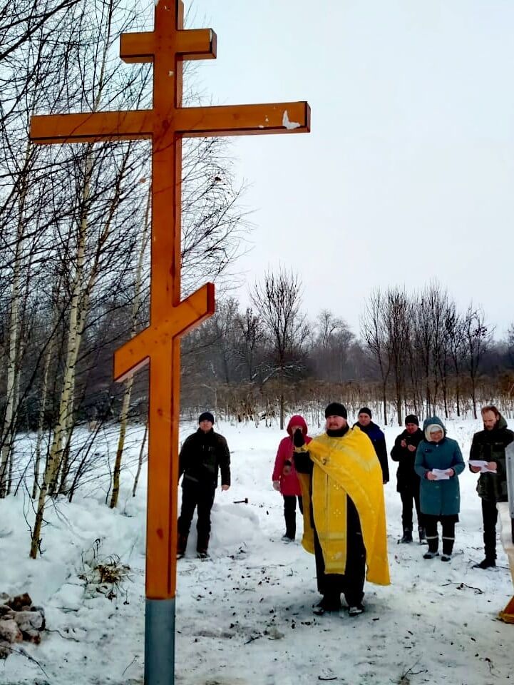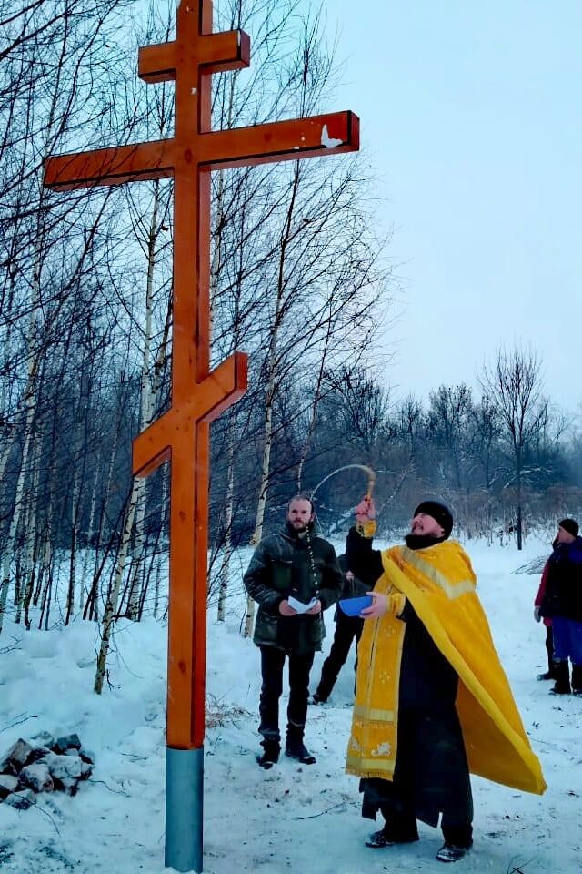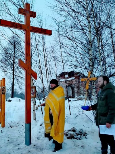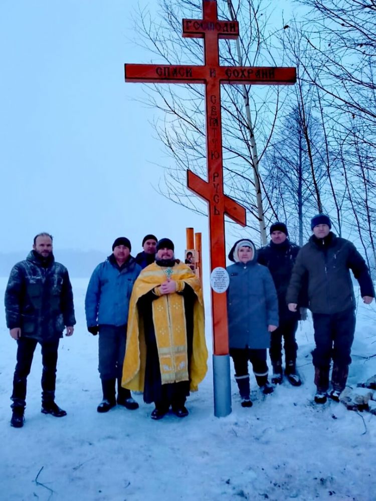 Организатором этого богоугодного дела выступил приход Владимирской иконы Божией Матери п. Мари-Купта. Чин освящения поклонного креста совершил настоятель храма Святителя Николая Мирликийского п. Мариец иерей Николай Аникин.