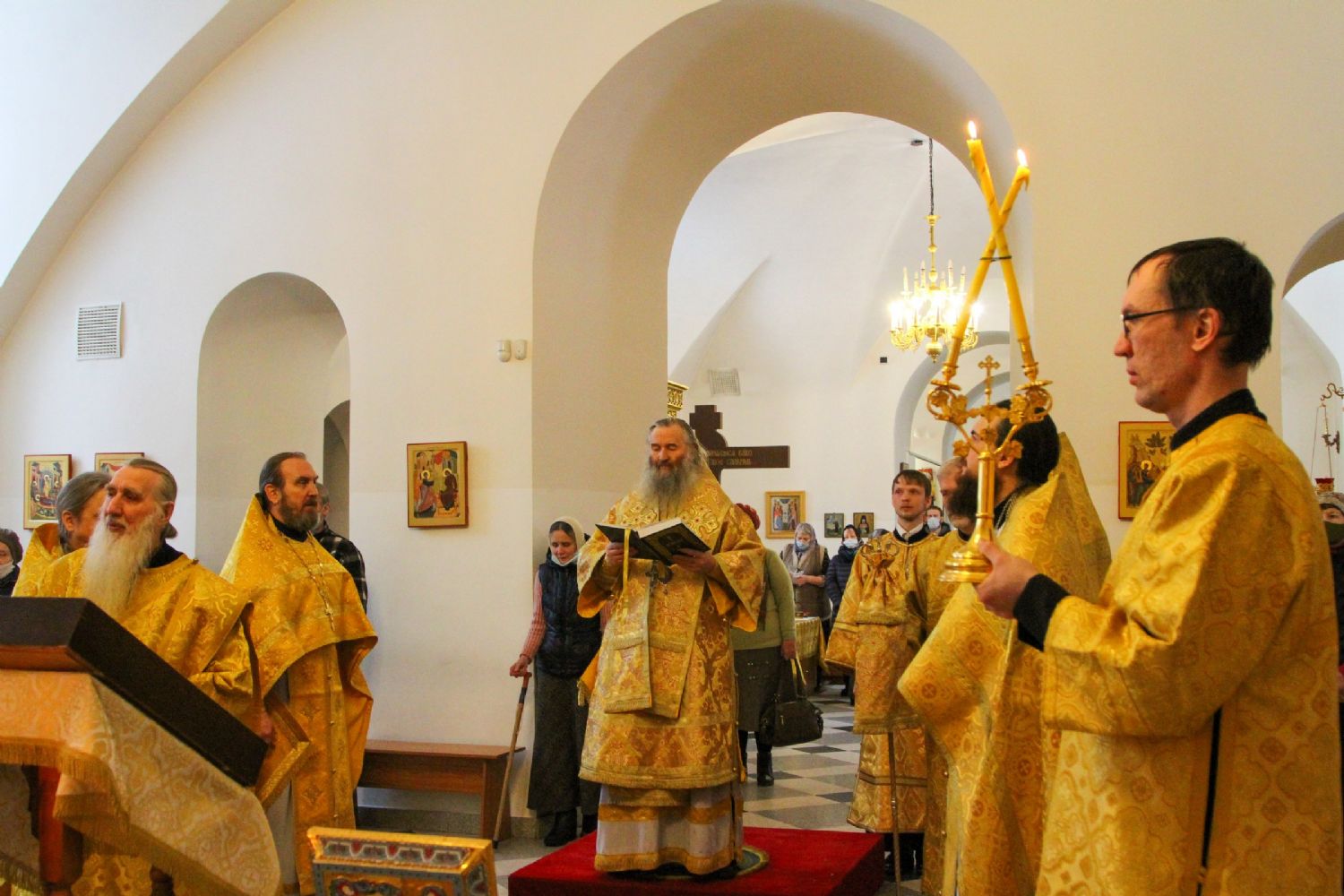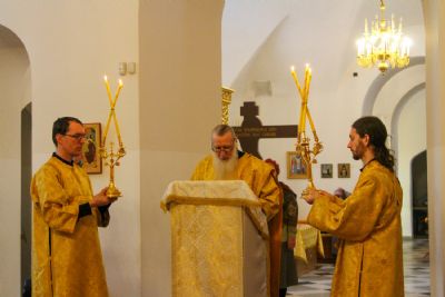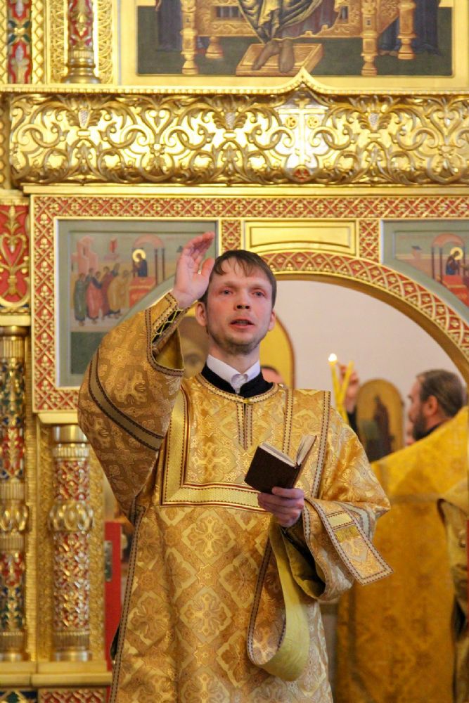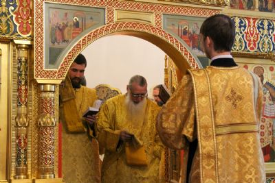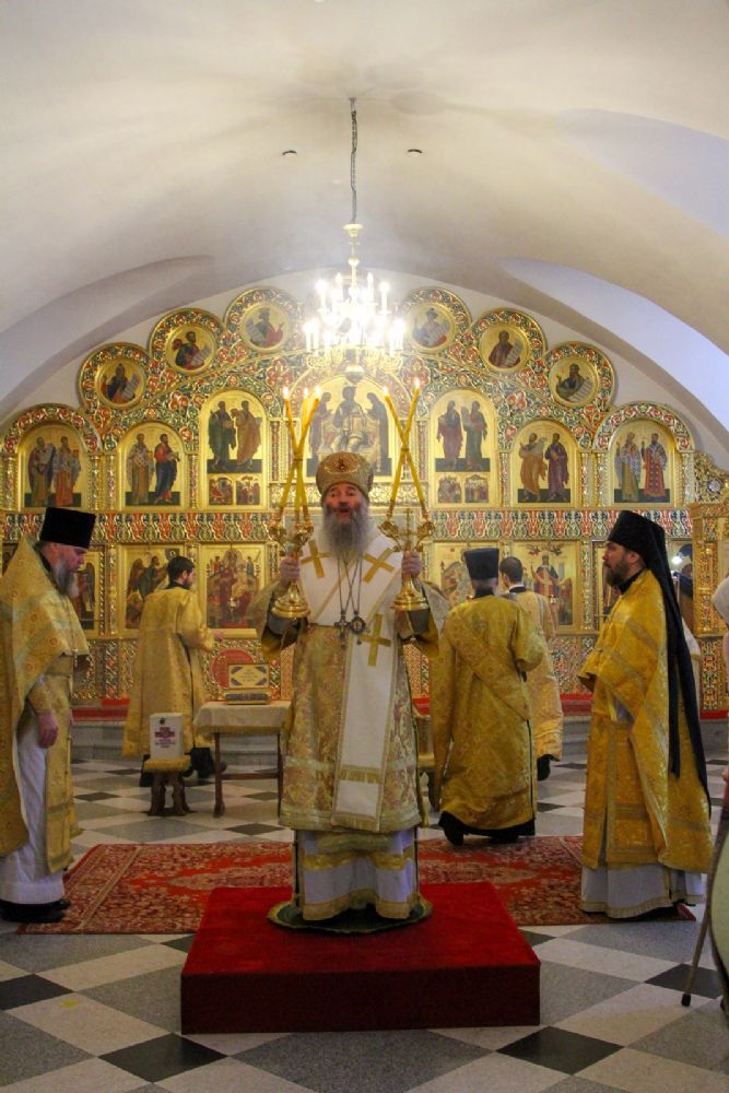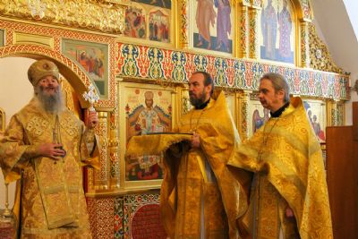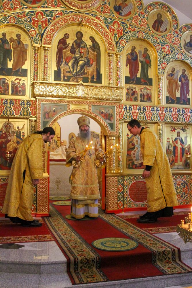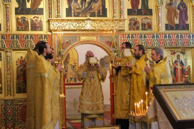 Архипастырю сослужили секретарь Йошкар-Олинского епархиального управления иеромонах Серафим (Пасанаев), настоятель храма протоиерей Александр Бачурин, клирики храма протоиерей Василий Лихачев, иереи Константин Домрачев, Николай Бабич, диакон Иван Милютин, клирик храма Рождества Пресвятой Богородицы с. Семеновка протодиакон Михаил Козловский и клирик Вознесенского собора диакон Владимир Лихачев. Песнопения исполнял хор под управлением регента Елены Умрихиной.