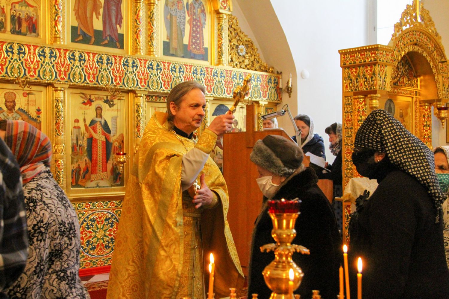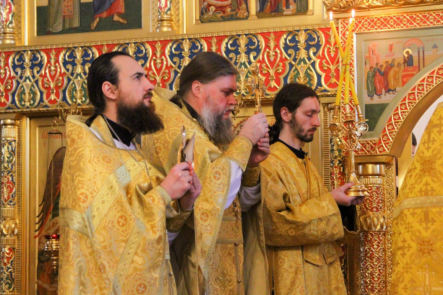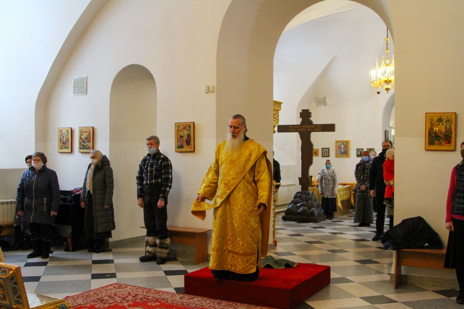 Архипастырю сослужили секретарь Йошкар-Олинского епархиального управления иеромонах Серафим (Пасанаев), настоятель храма протоиерей Александр Бачурин, клирики храма протоиерей Василий Лихачев, иереи Константин Домрачев, Николай Бабич, диакон Иван Милютин, клирик храма Рождества Пресвятой Богородицы с. Семеновка протодиакон Михаил Козловский и клирик Вознесенского собора диакон Владимир Лихачев. Песнопения исполнял хор под управлением регента Елены Умрихиной.