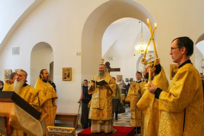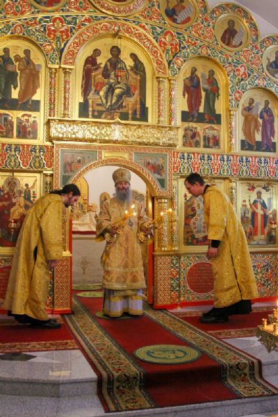 Митрополит Иоанн в праздник Трех святителей совершил Литургию в Серафимовском храме 3640