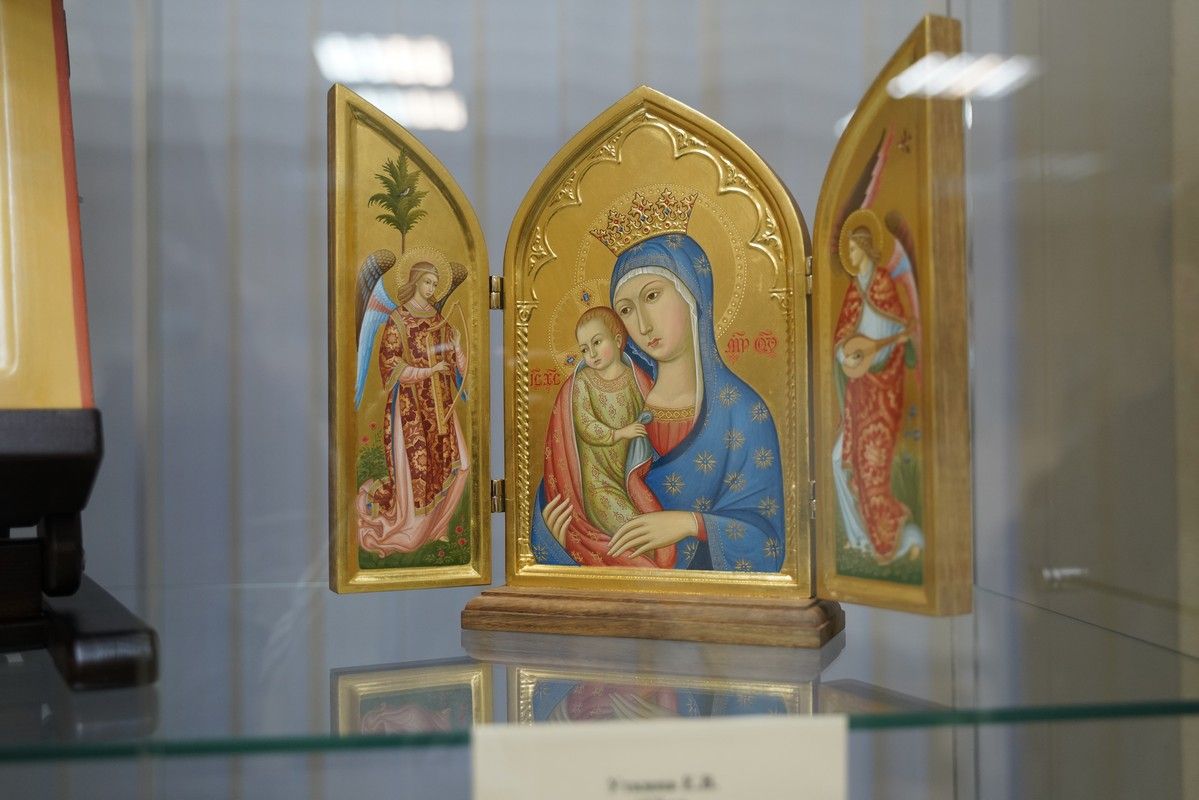 Руководитель иконописной мастерской Станислав Попов отметил, что название – «Безмолвная проповедь» – обусловлено тем, что авторы представленных работ стремятся без слов показать духовную красоту горнего мира.
