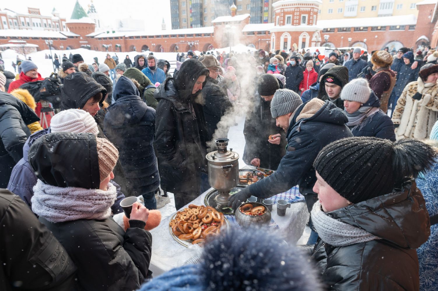 Праздник на свежем воздухе понравился и уже полюбился детям и молодежи. Несмотря на мороз, участникам было весело и жарко. Ведь их ждали богатырские игры, конкурсы и традиционные русские забавы. И, конечно, какой же праздник без угощения? Под открытым небом задымили самовары – гостям предлагали ароматный чай из трав, собранных на марийских лугах активистами епархиального Общества трезвости. Коробейники в традиционных русских костюмах разносили лотки с баранками и сладостями (спасибо неравнодушным людям из компании «Сладкий мир»).