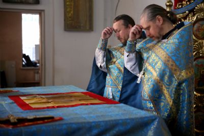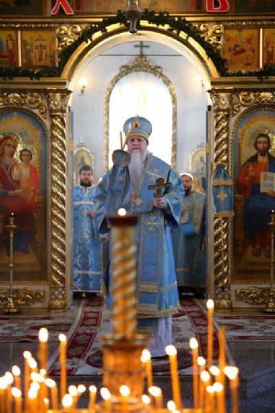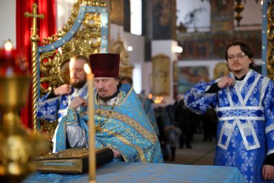 15 февраля, в праздник Сретения Господня, епископ Феофан возглавил Божественную литургию в Никольском кафедральном соборе г. Волжска в сослужении духовенства собора. Песнопения исполнял архиерейский хор.