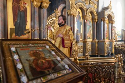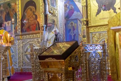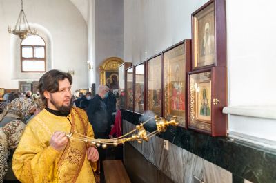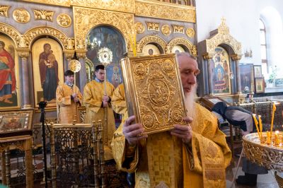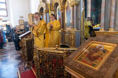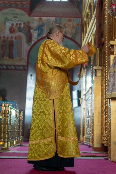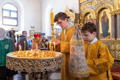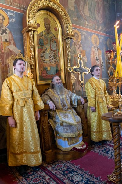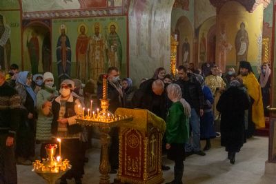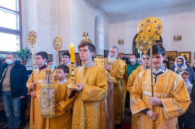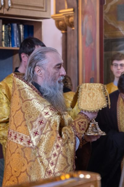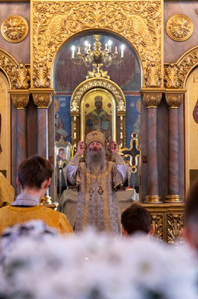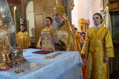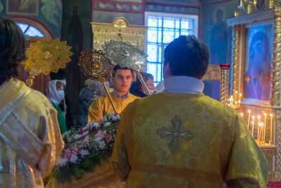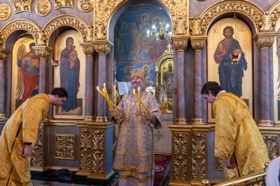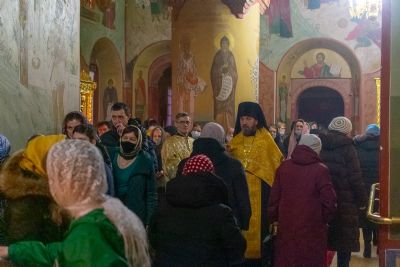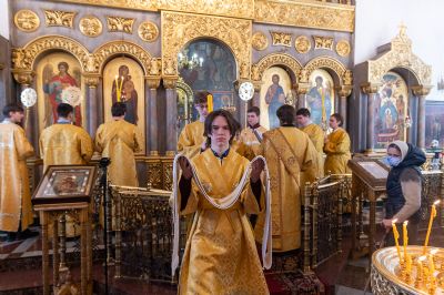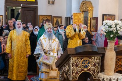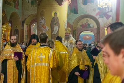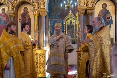 Его Высокопреосвященству сослужили настоятель храма протоиерей Сергий Филонов, клирики храма иерей Вячеслав Булычев, диакон Александр Мельников и клирик храма Рождества Пресвятой Богородицы с. Семеновка протодиакон Михаил Козловский. Песнопения исполнял хор храма под управлением регента Анастасии Филоновой.