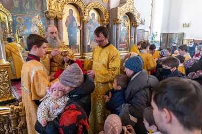В проповеди Владыка разъяснил духовный смысл читаемого за Литургией евангельского зачала – притчи о блудном сыне. В этой притче раскрывается история человечества, отпадшего от Бога, и одновременно для каждого человека открывается великая милость Господня – не случайно Святая Церковь в преддверии Великого поста восклицает: «Покаяния отверзи мне двери, Жизнодавче!»