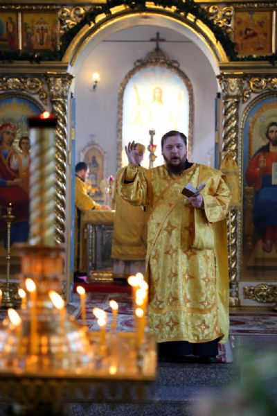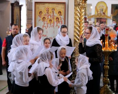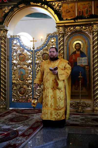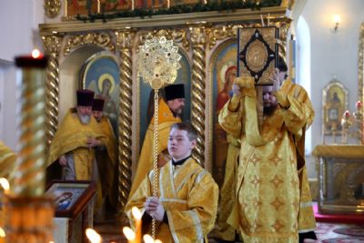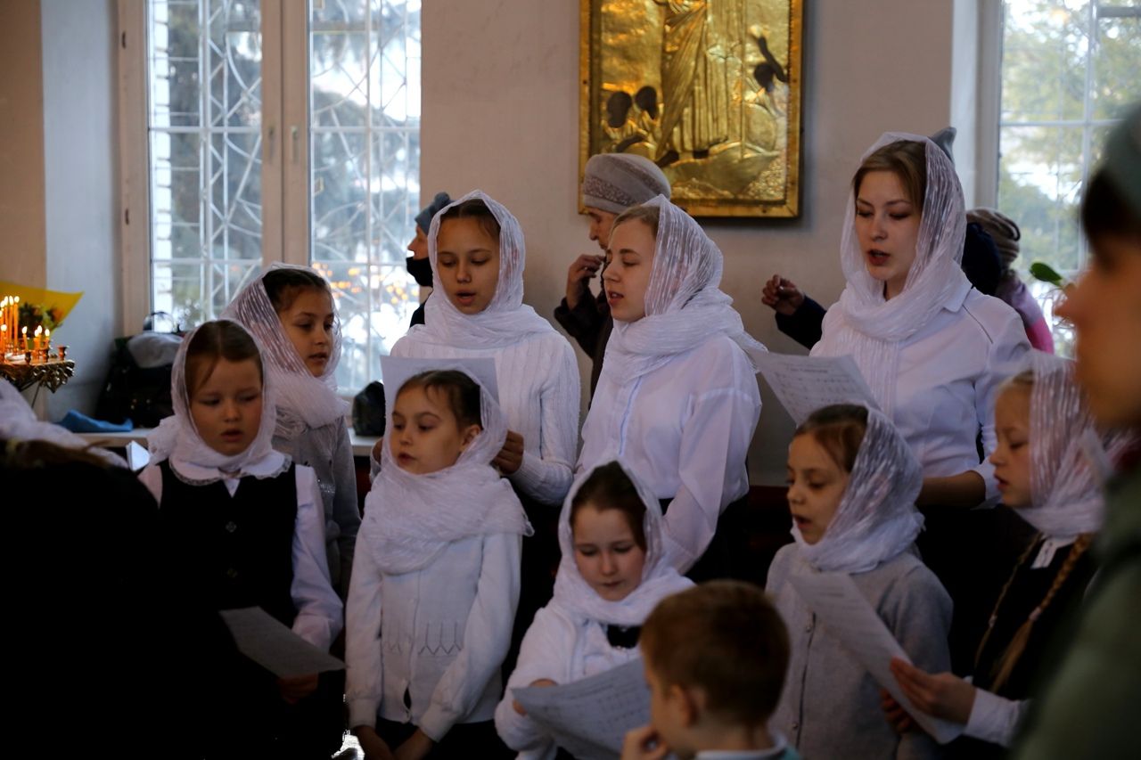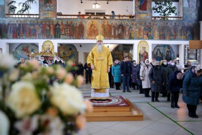 Его Преосвященству сослужило духовенство собора. Песнопения исполнял архиерейский хор под управлением Тимофея Протасова и детский хор (регент Мария Захарова).