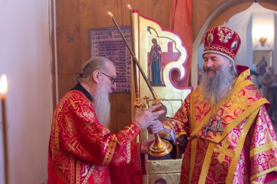 Владыке сослужили секретарь Йошкар-Олинского епархиального управления иеромонах Серафим (Пасанаев), клирик монастыря иерей Михаил Лежнин и клирик храма Рождества Пресвятой Богородицы с. Семеновка протодиакон Михаил Козловский. Богослужебные песнопения исполнял хор «Благовест» под управлением Татьяны Черновой.