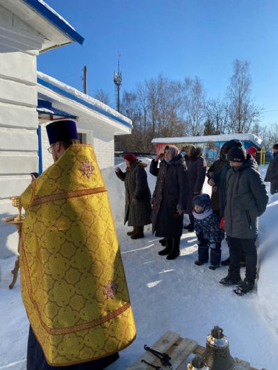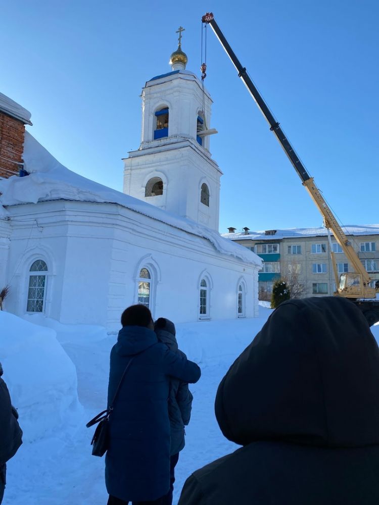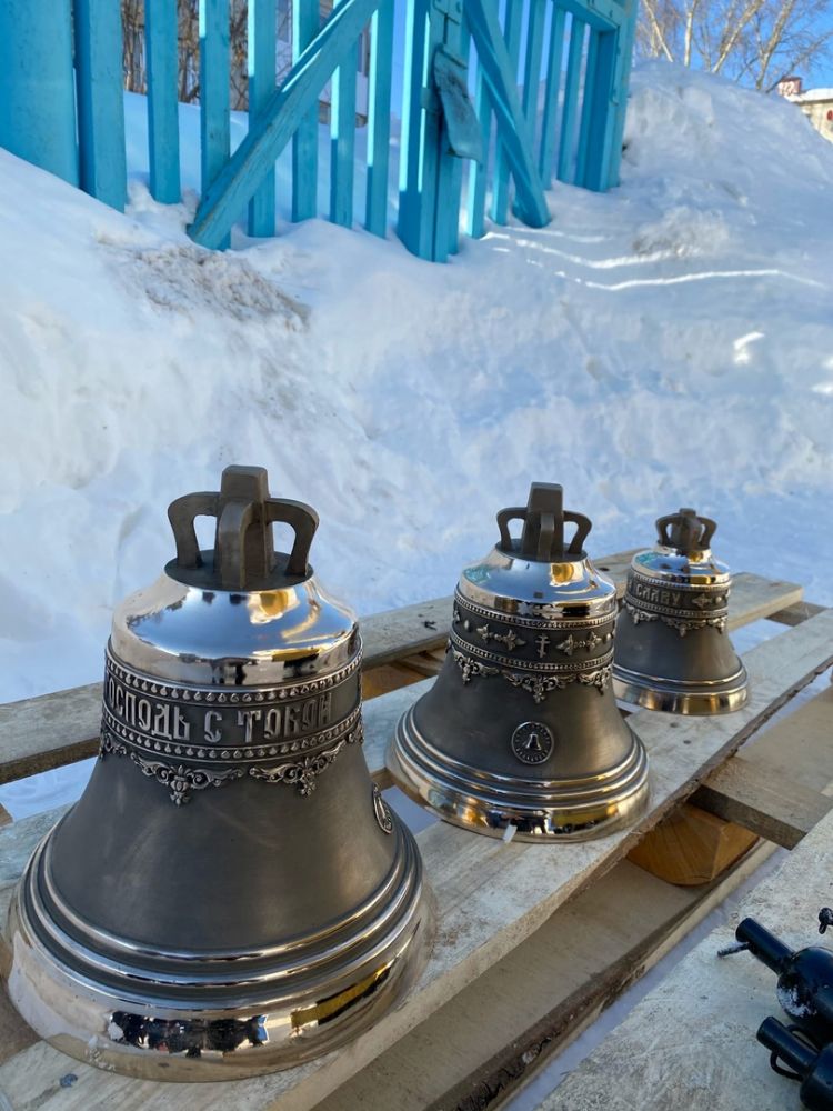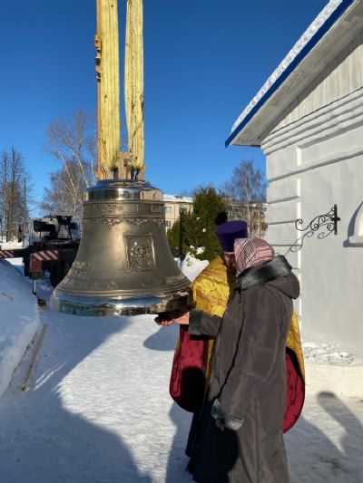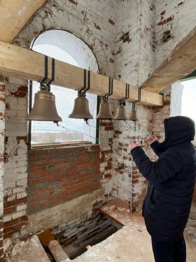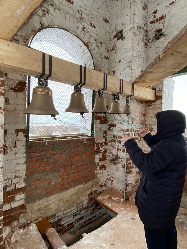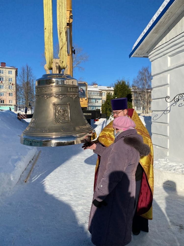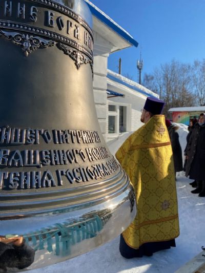 12 марта состоялось освящение колоколов для звонницы возрождаемого храма Сретения Господня села Азаново Медведевского района.