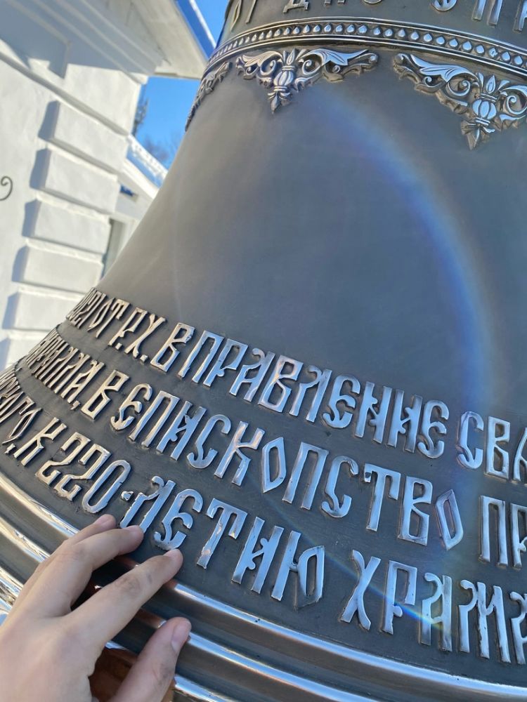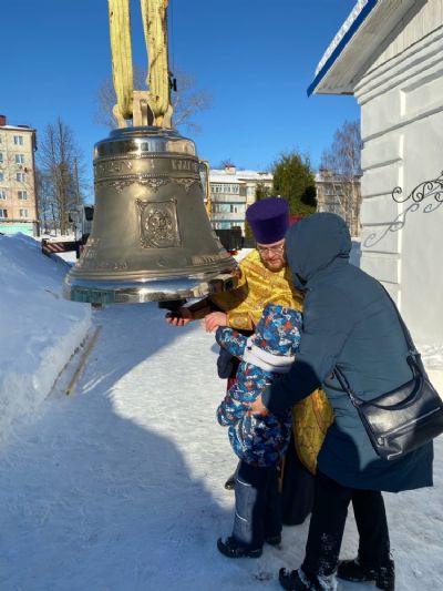 После чина освящения настоятель совершил первый символичный удар в колокол. Далее и все желающие смогли прикоснуться к святыне и позвонить в колокол.
