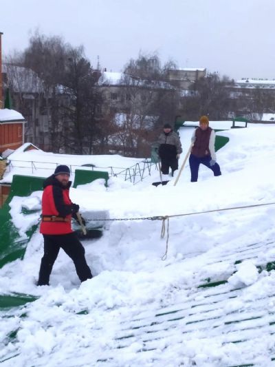 16 марта сотрудники Царевококшайской иконописной мастерской дружно вышли на уборку снега с крыши Православного центра.