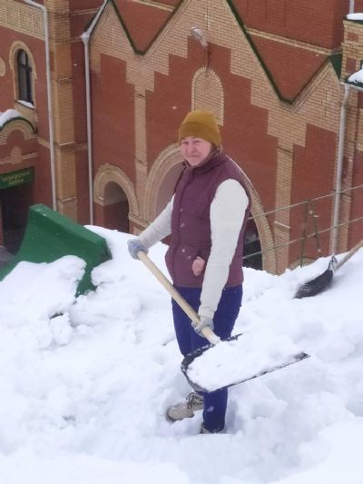 Завхоз Петр Скобелев снабдил их нужным инструментом, и сам присоединился к работам. Через полдня снег был сброшен во двор, откуда его вывозят рабочие Православного центра.