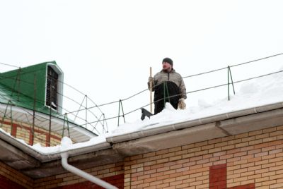 Зима в этом году выдалась снежная – на крышах образовались целые сугробы. Теперь, когда мартовское солнышко днем пригревает уже ощутимо, снег начал таять – это создает угрозу и образования опасных сосулек, и срывания снежных пластов вниз. А ведь в Православном центре базируются и детский сад, и воскресная школа, и множество епархиальных отделов – словом, во дворе Центра бывает многолюдно…