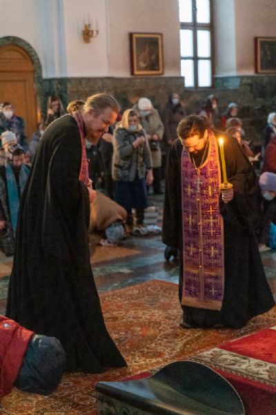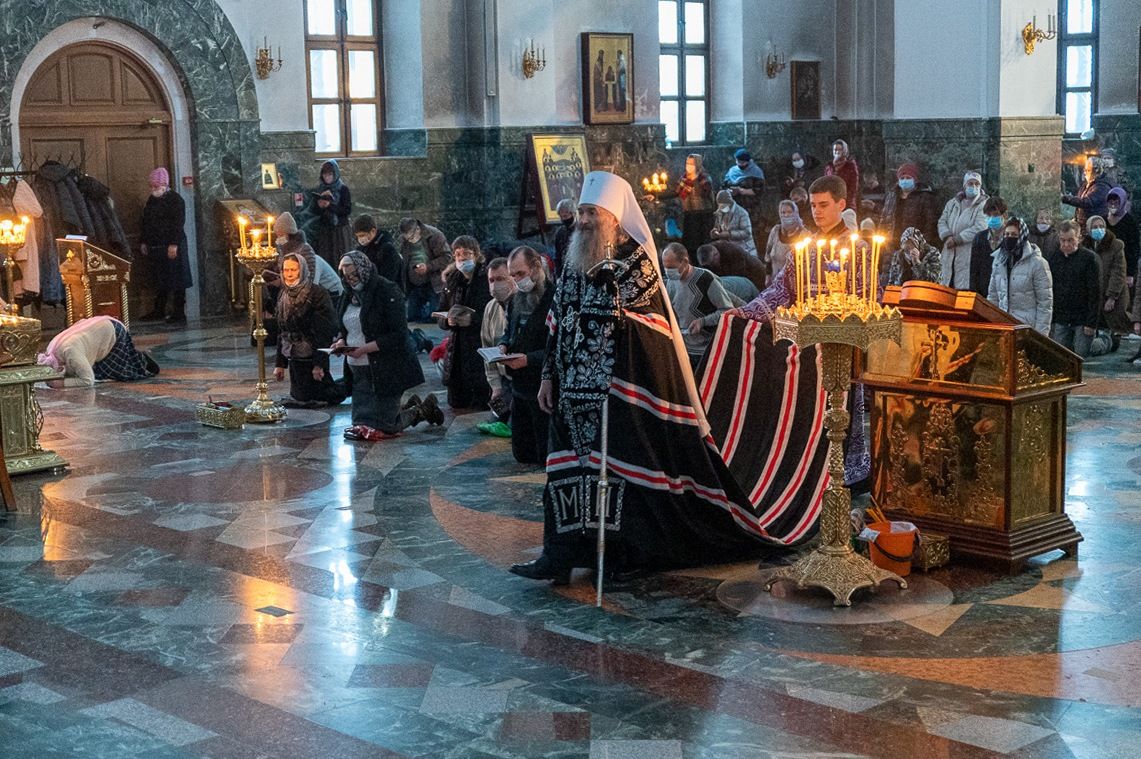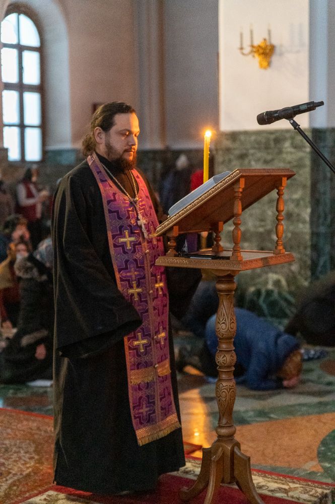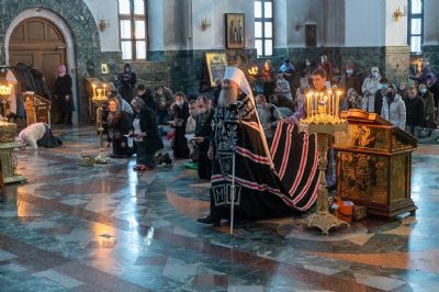 После молитв обычного начала и 69 псалма митрополит Иоанн начал чтение Великого канона. Чтение продолжили ключарь собора протоиерей Сергий Поглазов и клирик собора иерей Никифор Захаров. Песнопения повечерия исполнял хор «Благовест» под руководством регента Татьяны Черновой (канонарх – диакон Игорь Коваль).