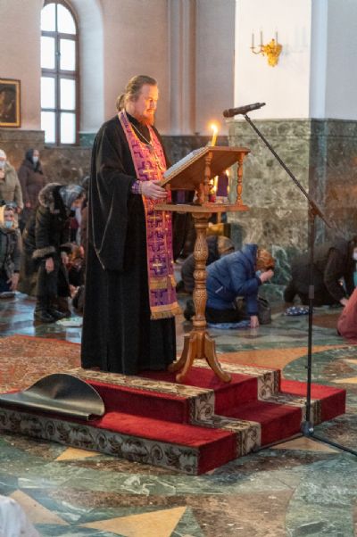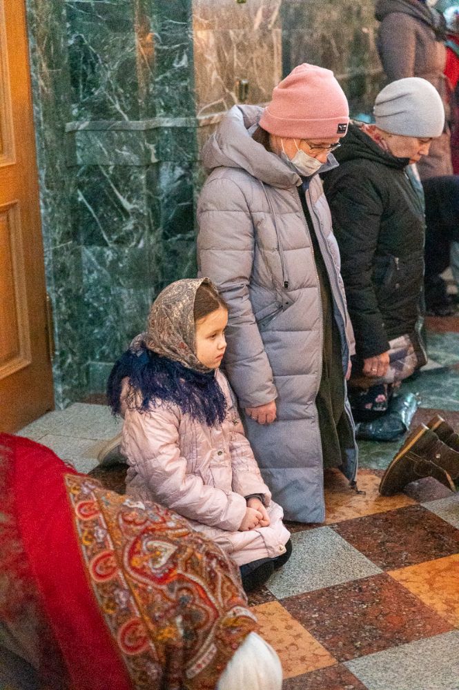 Богослужение началось в 7 часов с утрени. Третий, шестой, девятый часы, служба изобразительных и вечерня были отслужены с чтением положенных по уставу кафизм, поклонов с молитвой Ефрема Сирина и паремией из книги пророка Исаии (1 глава) о грехах народа и богоугодном посте.