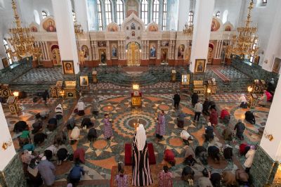 Несмотря на будний день, в храме было много прихожан всех возрастов. По традиции, чтение канона люди слушали, стоя на коленях. Многие следили за текстом, наполненным множеством нравоучительных библейских примеров.