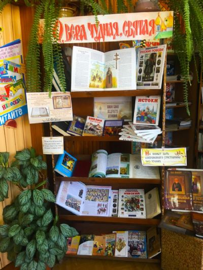 Также дети ознакомились с книжной выставкой «О, вера чудная, святая!», а еще с большим интересом осмотрели и полистали старинную книгу XVII века на церковнославянском языке.