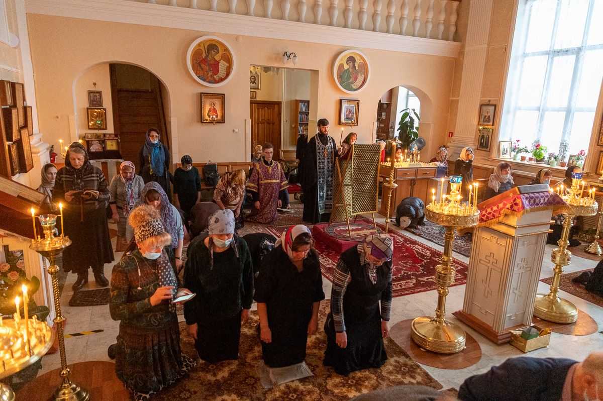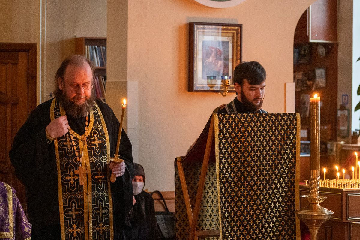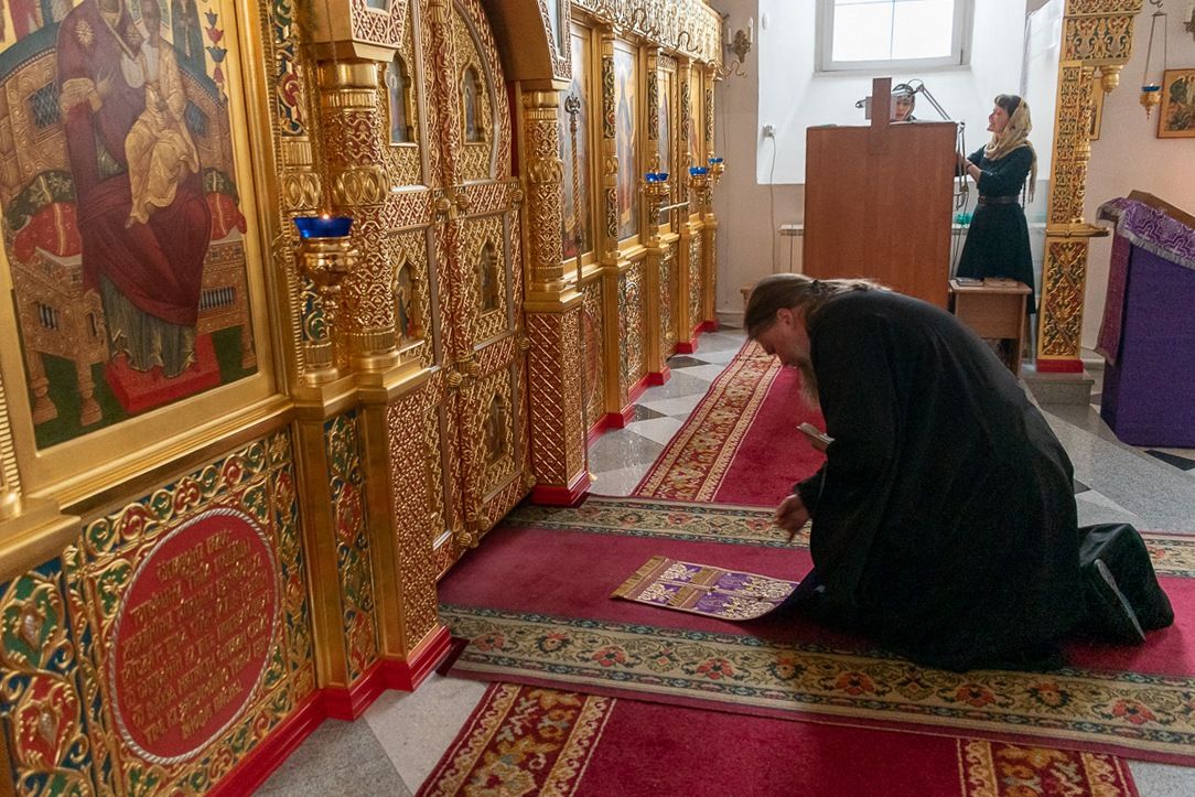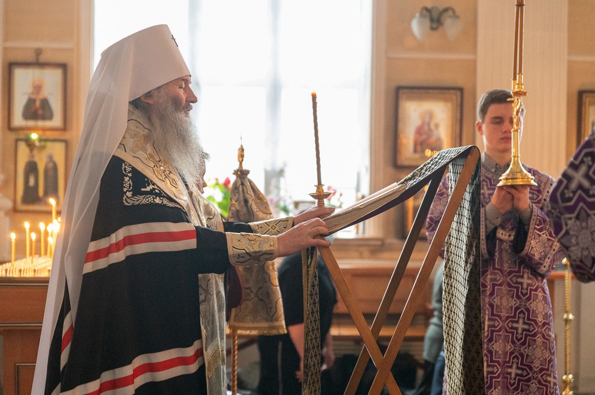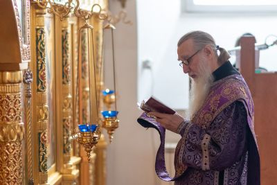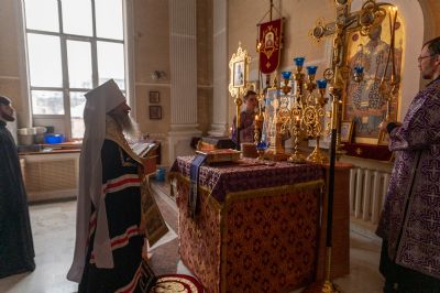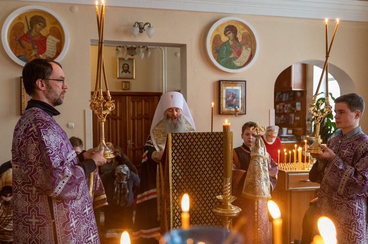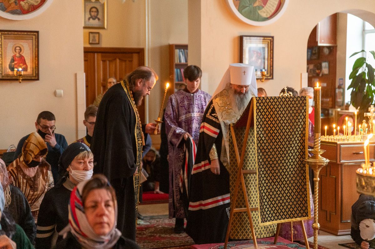 За богослужением читалась заключительная, четвертая часть Великого канона. Владыка Иоанн в центре храма читал первые пять песней канона, затем чтение продолжили настоятель храма протоиерей Евгений Сурков и клирик храма иерей Андрей Иванов. Песнопения исполнял хор под управлением регента Екатерины Григорьевой.