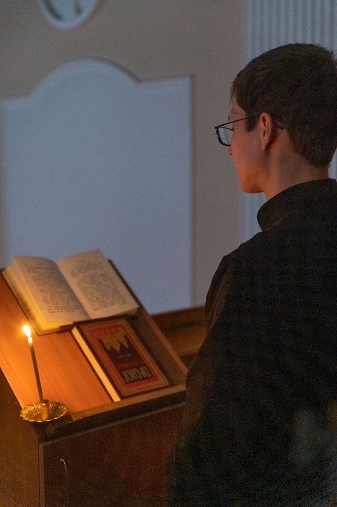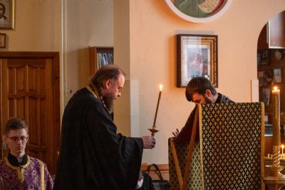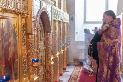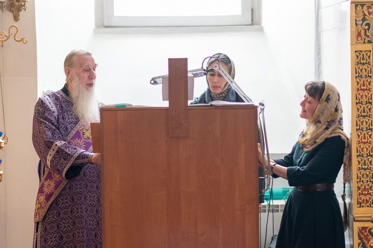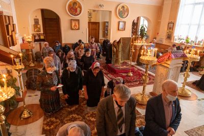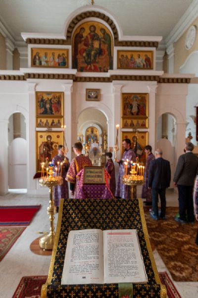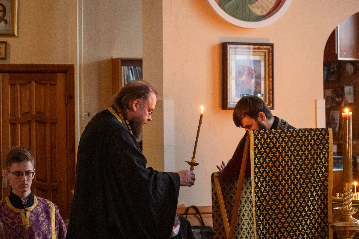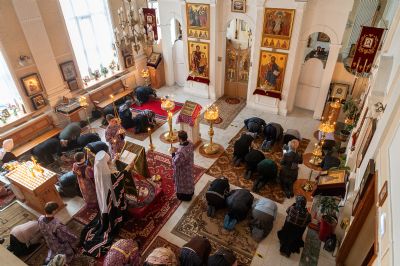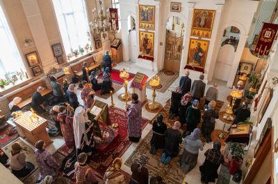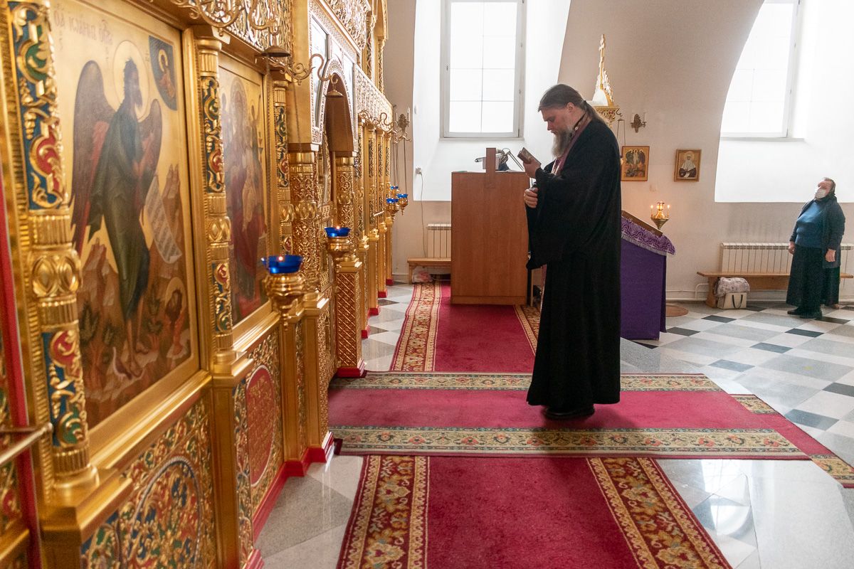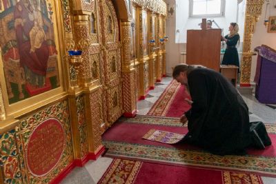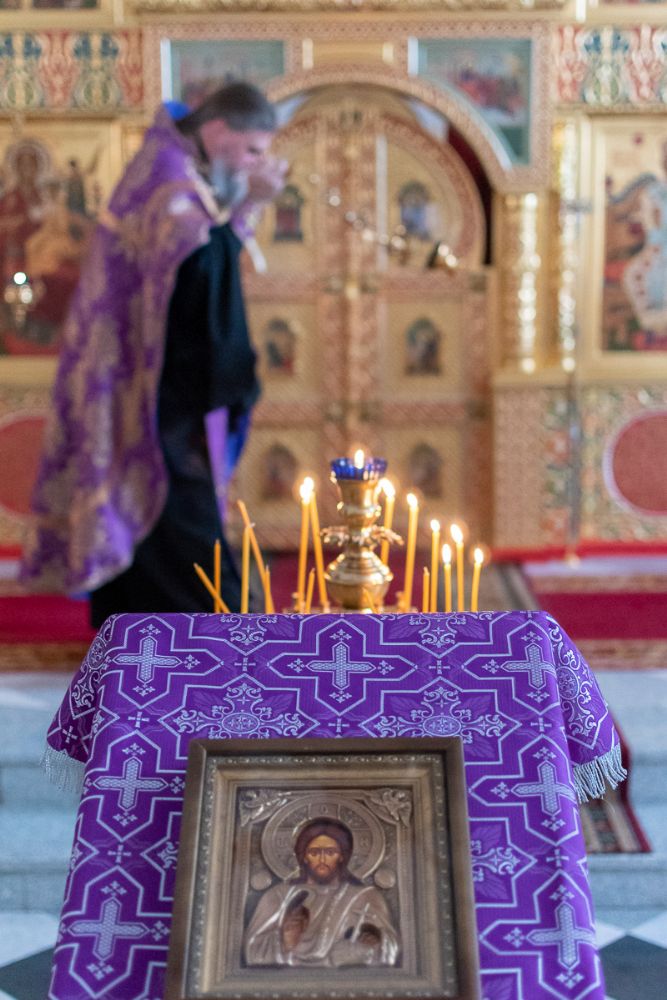 За богослужением читалась заключительная, четвертая часть Великого канона. Владыка Иоанн в центре храма читал первые пять песней канона, затем чтение продолжили настоятель храма протоиерей Евгений Сурков и клирик храма иерей Андрей Иванов. Песнопения исполнял хор под управлением регента Екатерины Григорьевой.