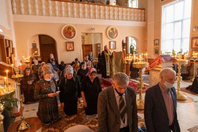 Богослужение возглавлял настоятель храма протоиерей Александр Бачурин. Ему сослужили клирики храма и клирик храма Рождества Пресвятой Богородицы с. Семеновка протодиакон Михаил Козловский. Песнопения исполнял хор под руководством регента Ирины Айгловой.