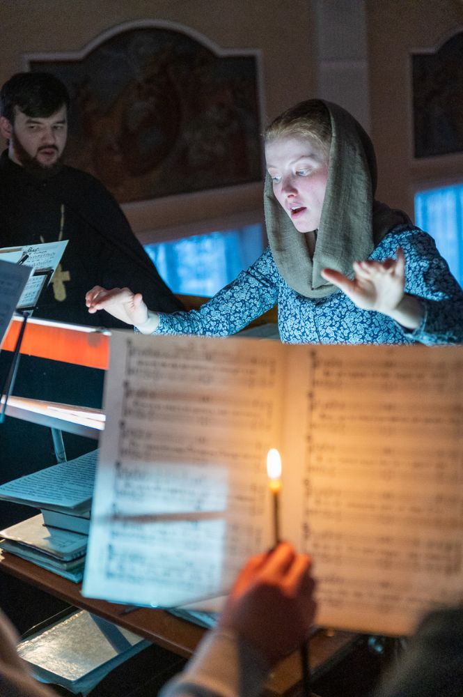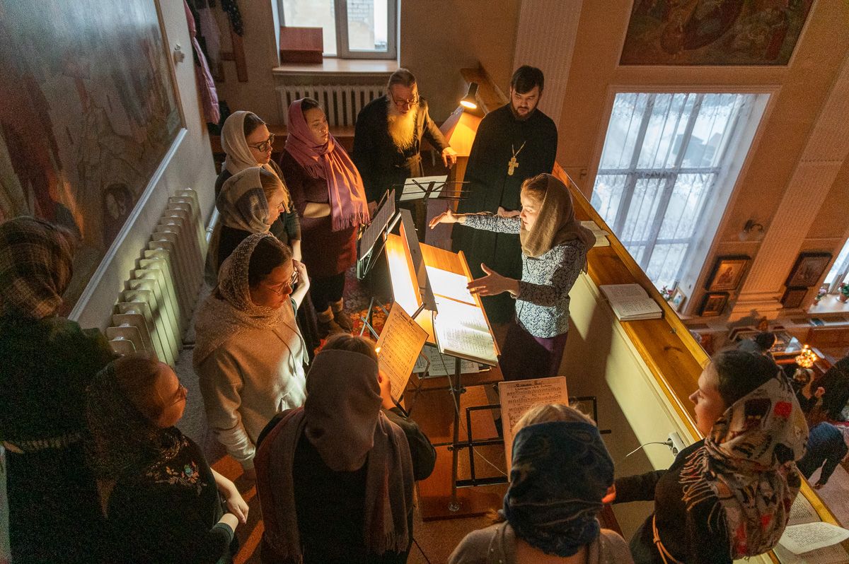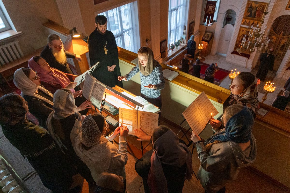 Великим постом в будние дни на утрене поются библейские песни: три песни полностью (одна из первых пяти, соответствующая дню недели, и восьмая с девятой). Таким образом, сегодня прихожане слышали песнь пророка Аввакума из одноименной книги Ветхого завета (3 глава), песнь отроков в печи вавилонской из книги пророка Даниила (3 глава) и новозаветные песни Пречистой Девы Марии и Захарии (Евангелие от Луки, 1 глава).