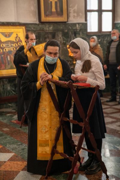 После Божественной литургии был совершен чин Торжества Православия. В центр собора священство вынесло иконы Иисуса Христа и Пресвятой Богородицы. Помимо обычного для молебнов псалма, ектеньи, чтений из Апостола, Евангелия и молитвы, были исполнены особые возглашения анафем за различные уклонения от Православия и многолетия (или вечная память усопшим) утверждавшим правую веру.
