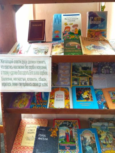 Библиотекарь Л.И. Стрелкова организовала книжную выставку-просмотр «Духовных книг божественная мудрость» и подготовила обзор книг. На выставке была представлена православная литература, художественные книги – ведь посредством художественного слова многие духовные истины нередко открываются яснее и убедительнее. Это стихи, рассказы и повести, раскрывающие нам основы христианской нравственности, воспитывающие добрые чувства и побуждающие к добрым поступкам. Нельзя не вспомнить слова старца Макария Оптинского: «Чтение духовных книг просвещает наш разум и показывает путь ко спасению, питает душу так, как физическая пища питает тело».