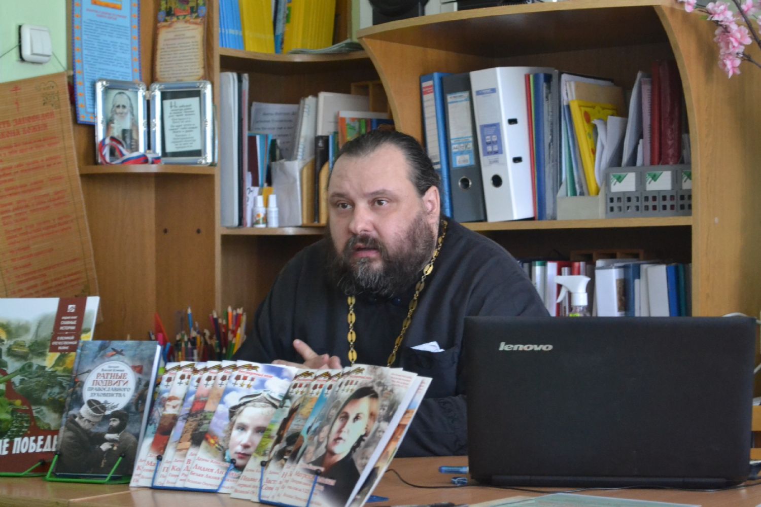 С приветственным словом к собравшимся обратился настоятель Свято-Троицкого храма, благочинный Горномарийского церковного округа, протоиерей Алексий Сущев. Затем отец Алексий представил с интересный материал «Солдат по имени Церковь» по книге Михаила Шкаровского «Господь дарует нам Победу» – о Русской Православной Церкви в период Великой Отечественной войны. Выступления воспитанников Воскресной школы Свято-Троицкого храма чередовались поэтическими заставками.