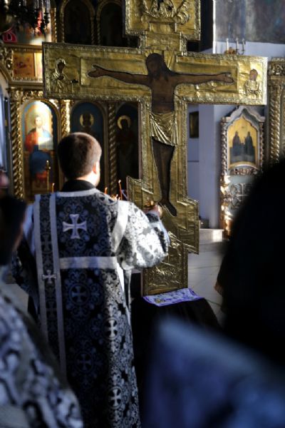 В конце службы все верующие с благоговением подходят поклониться перед Распятием, Крестом Христовым, который на Пассии выносится на середину храма.