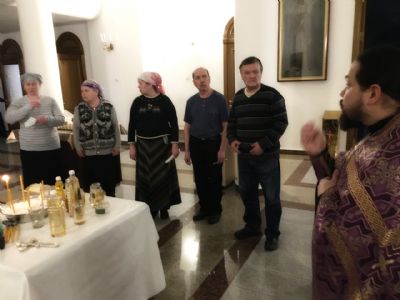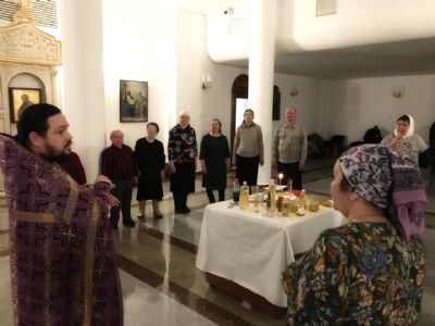 Соборование предварилось беседой, в которой духовник общины иерей Никифор Захаров на жестовом языке рассказал собравшимся суть таинства Елеосвящения (Соборования), его значение для верующего человека, правила использования освященного елея.
