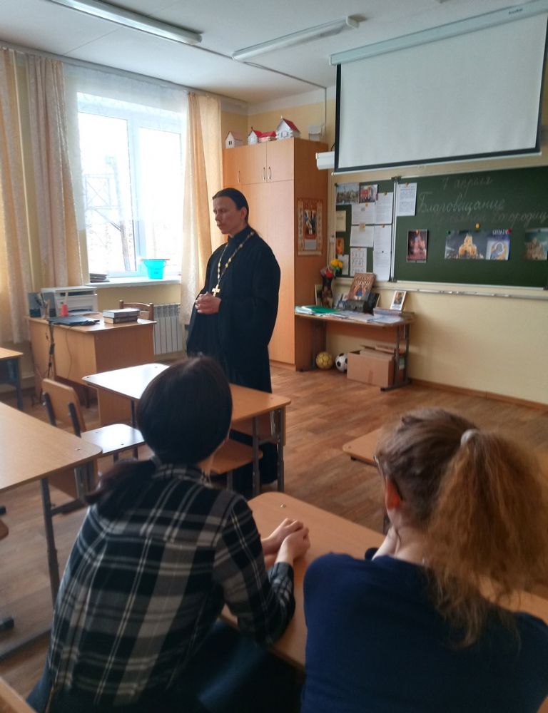 Отец Василий рассказал ребятам о библейской истории праздника, о его значимости для каждого человека, ответил на все интересующие школьников вопросы.