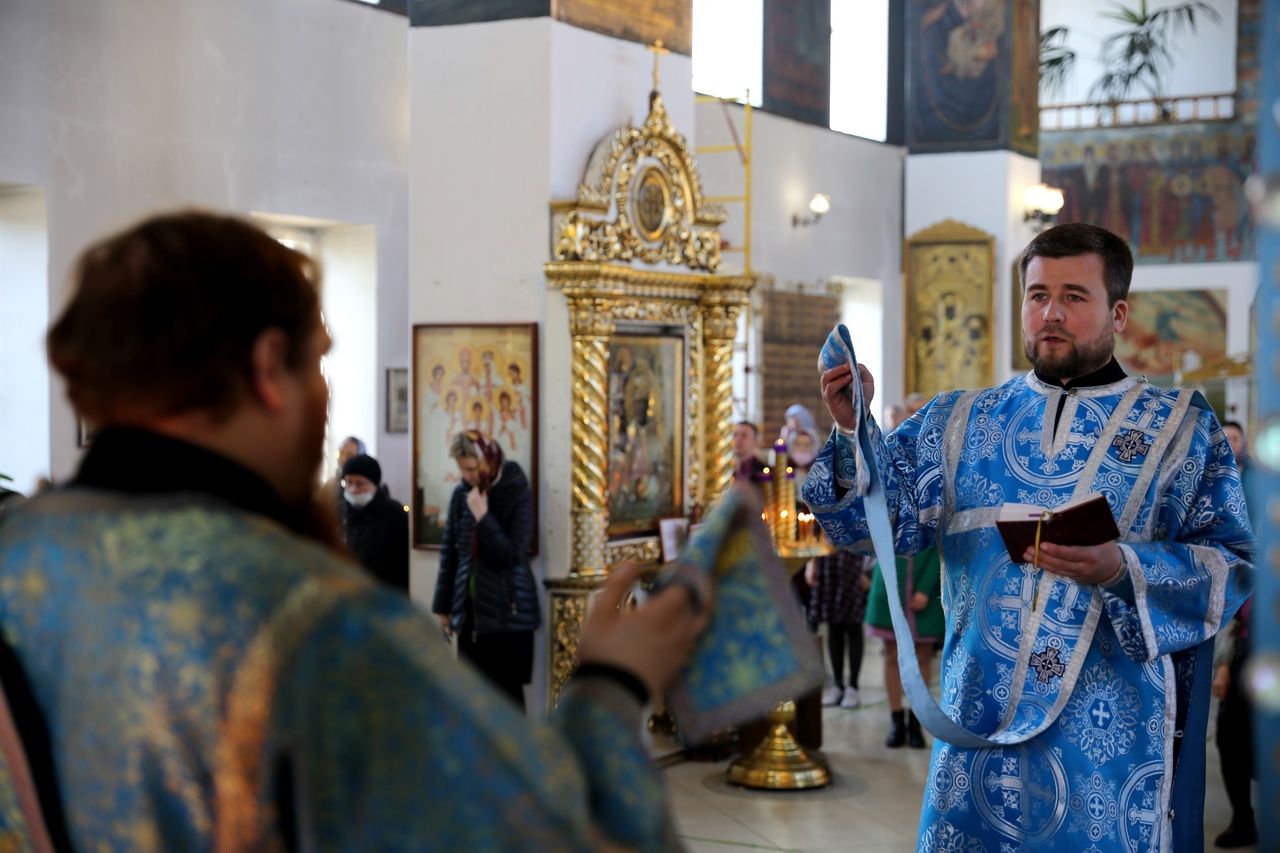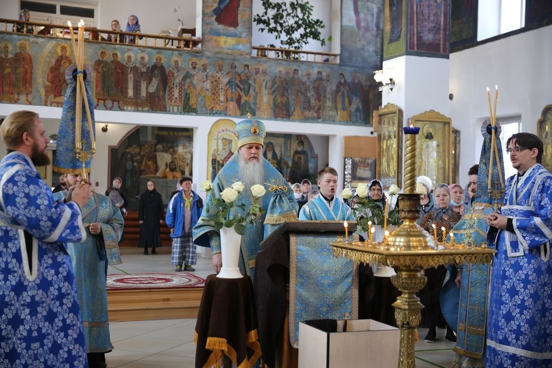 17 апреля, в день празднования Похвалы Пресвятой Богородицы, епископ Феофан возглавил Божественную литургию в Никольском кафедральном соборе г. Волжска.
