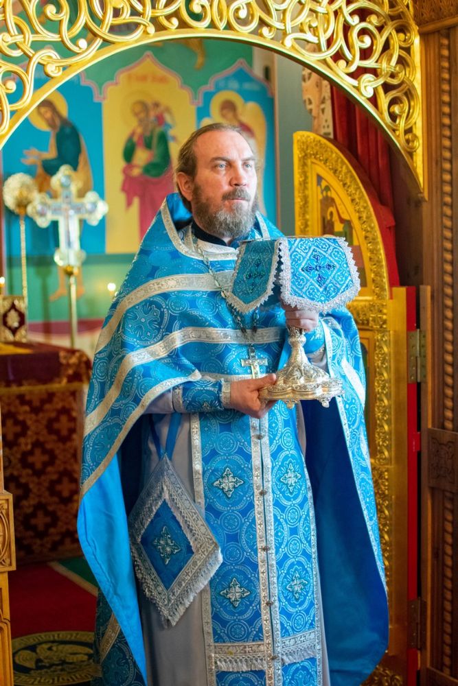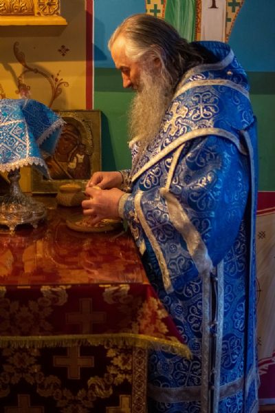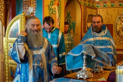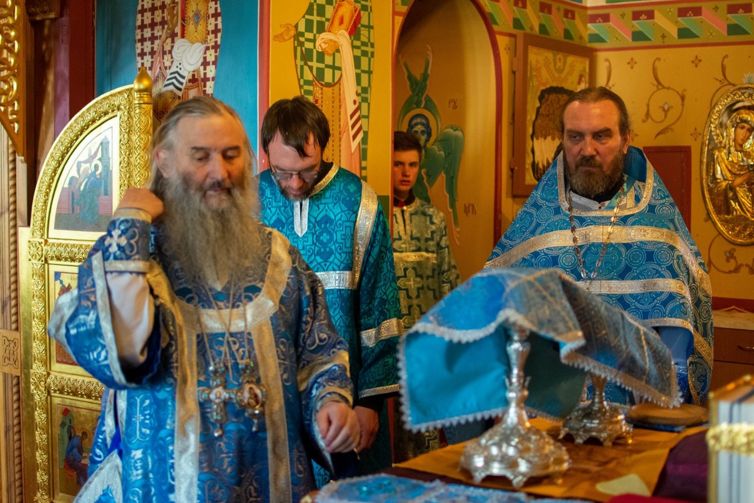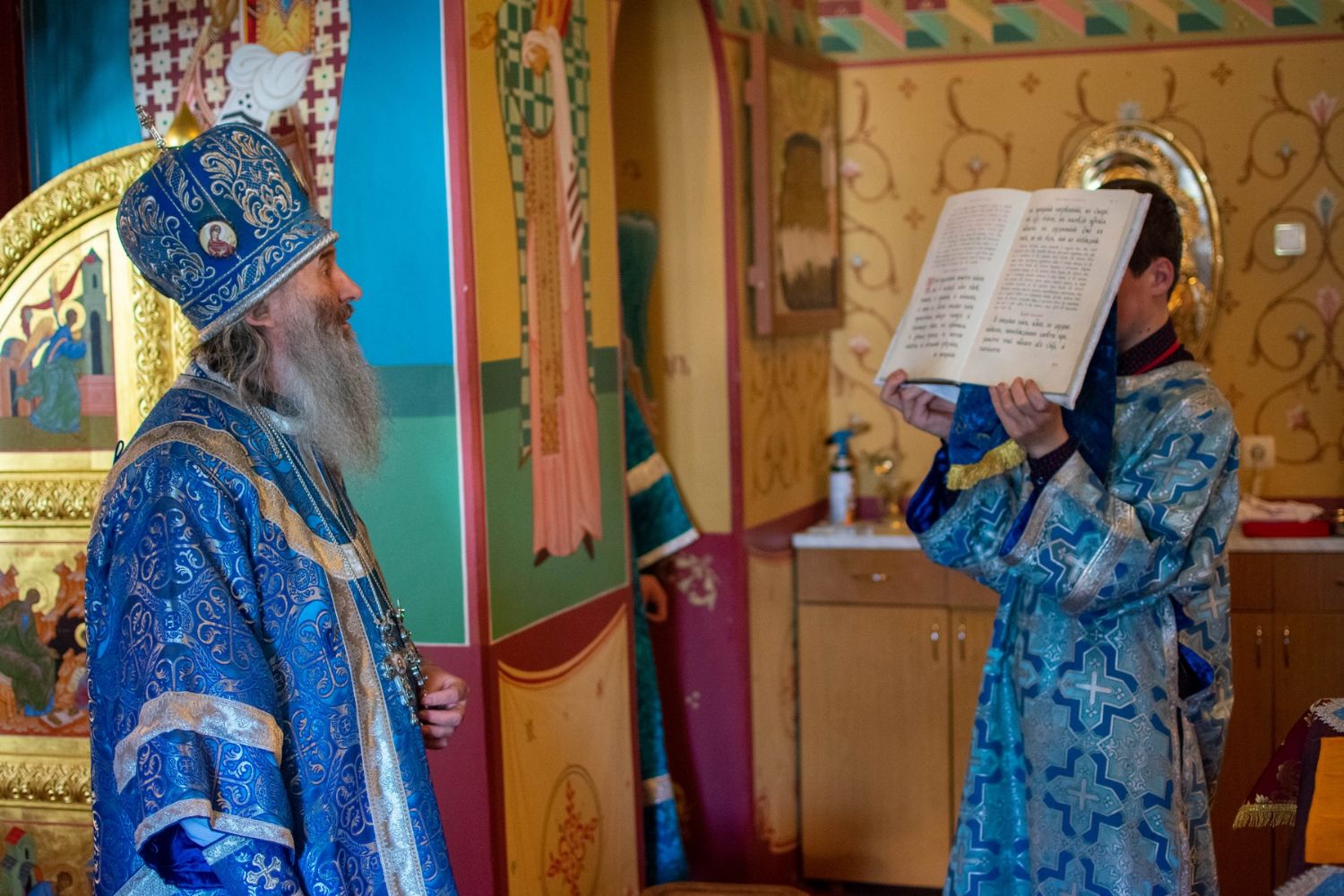 Владыке сослужили секретарь Йошкар-Олинского епархиального управления иеромонах Серафим (Пасанаев) и клирик храма Рождества Пресвятой Богородицы с. Семеновка протодиакон Михаил Козловский. Песнопения исполнял детско-юношеский хор «Благовест» под руководством регента Татьяны Черновой.