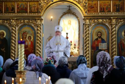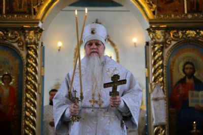 24 апреля, в Лазареву субботу, епископ Волжский и Сернурский Феофан совершил Божественную литургию в Никольском кафедральном соборе г. Волжска.