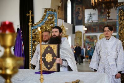 Владыке сослужили клирики собора, пел малый состав архиерейского хора под управлением Тимофея Протасова.