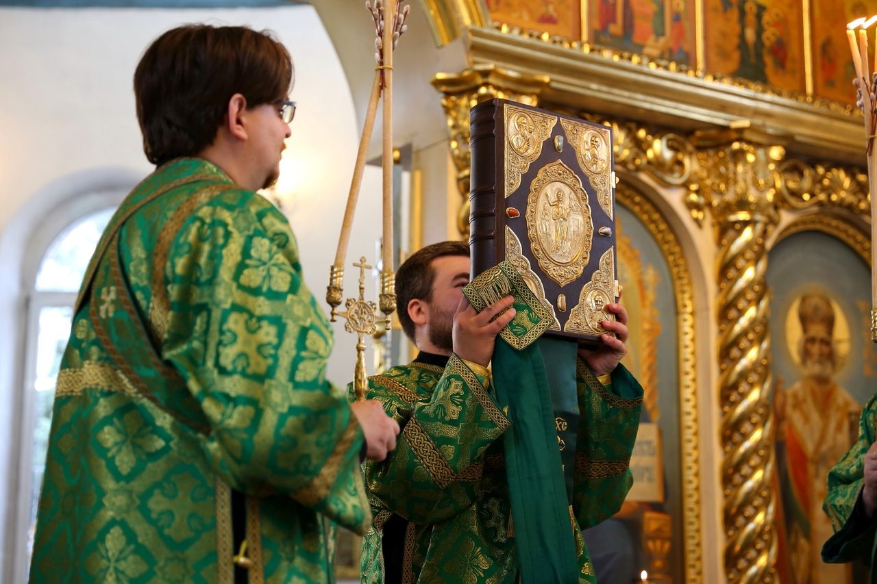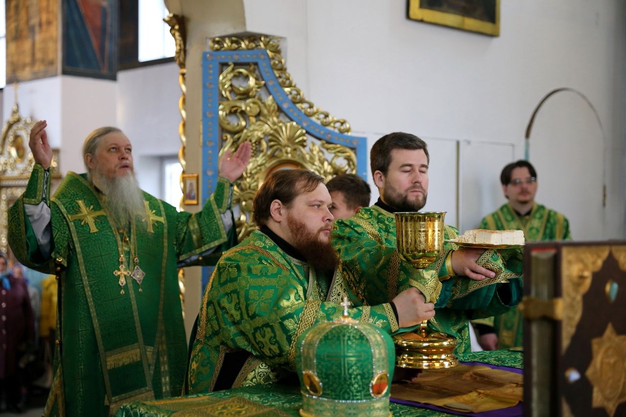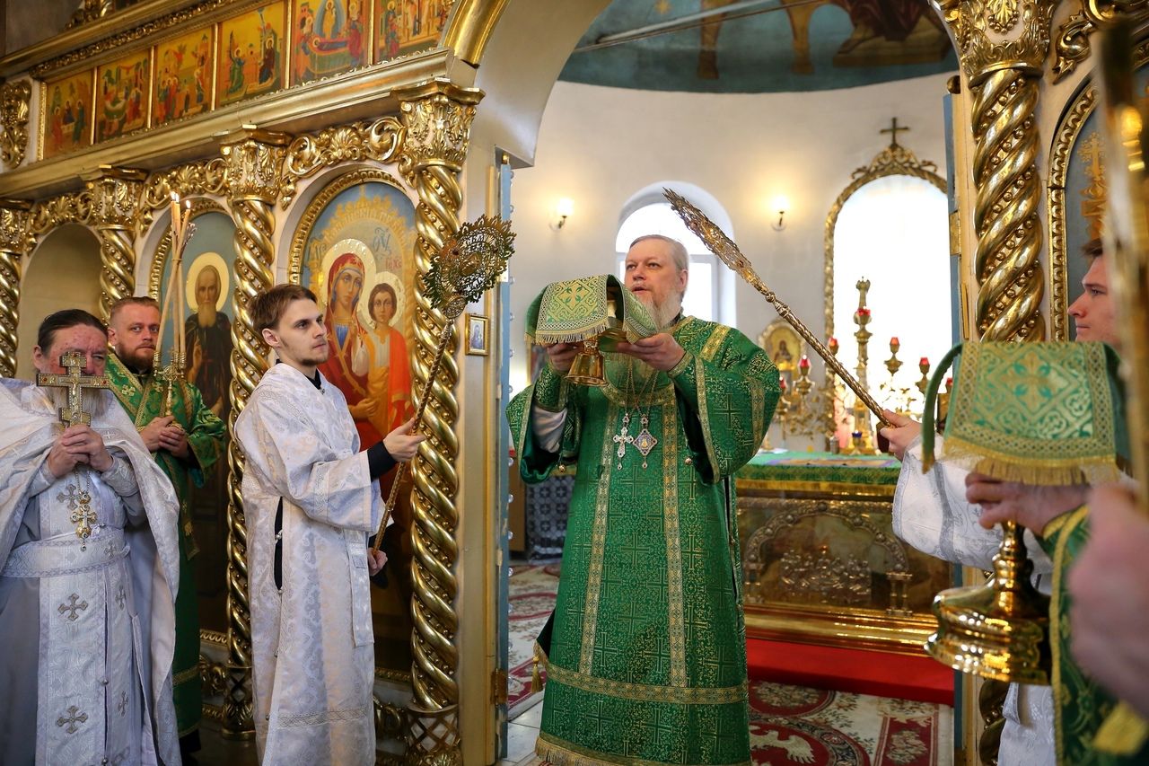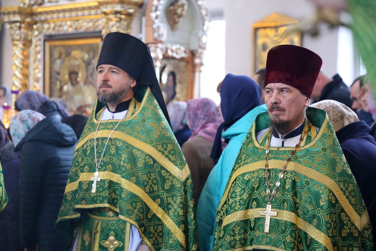 Архипастырю сослужили клирики кафедрального собора. Песнопения исполнял архиерейский хор под управлением Тимофея Протасова, на Литургии также пел детский хор под управлением Марии Захаровой.
