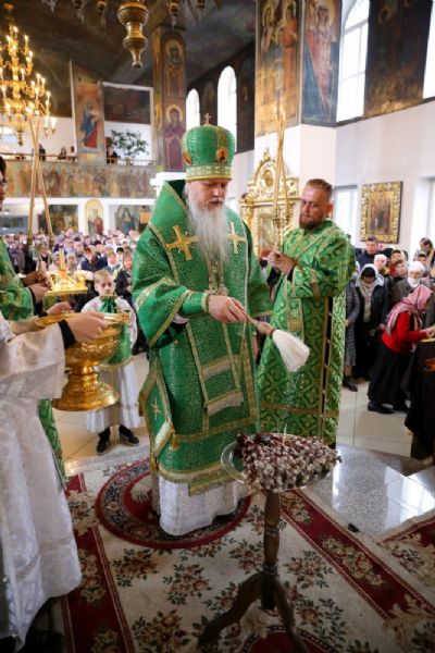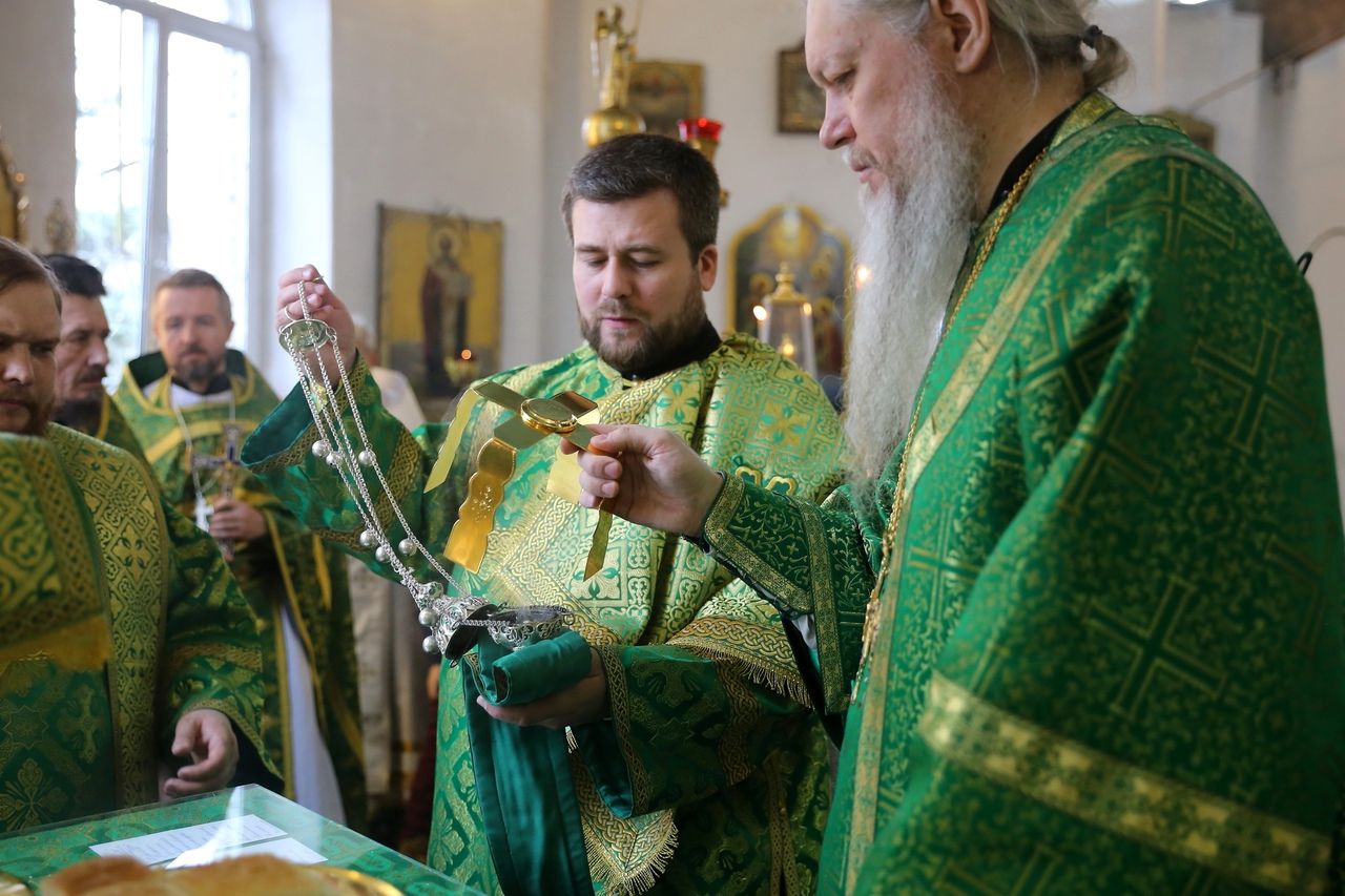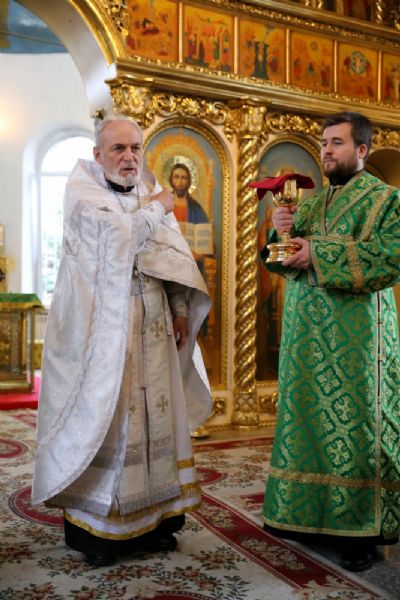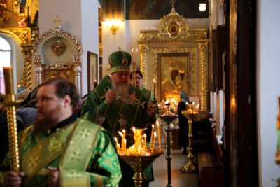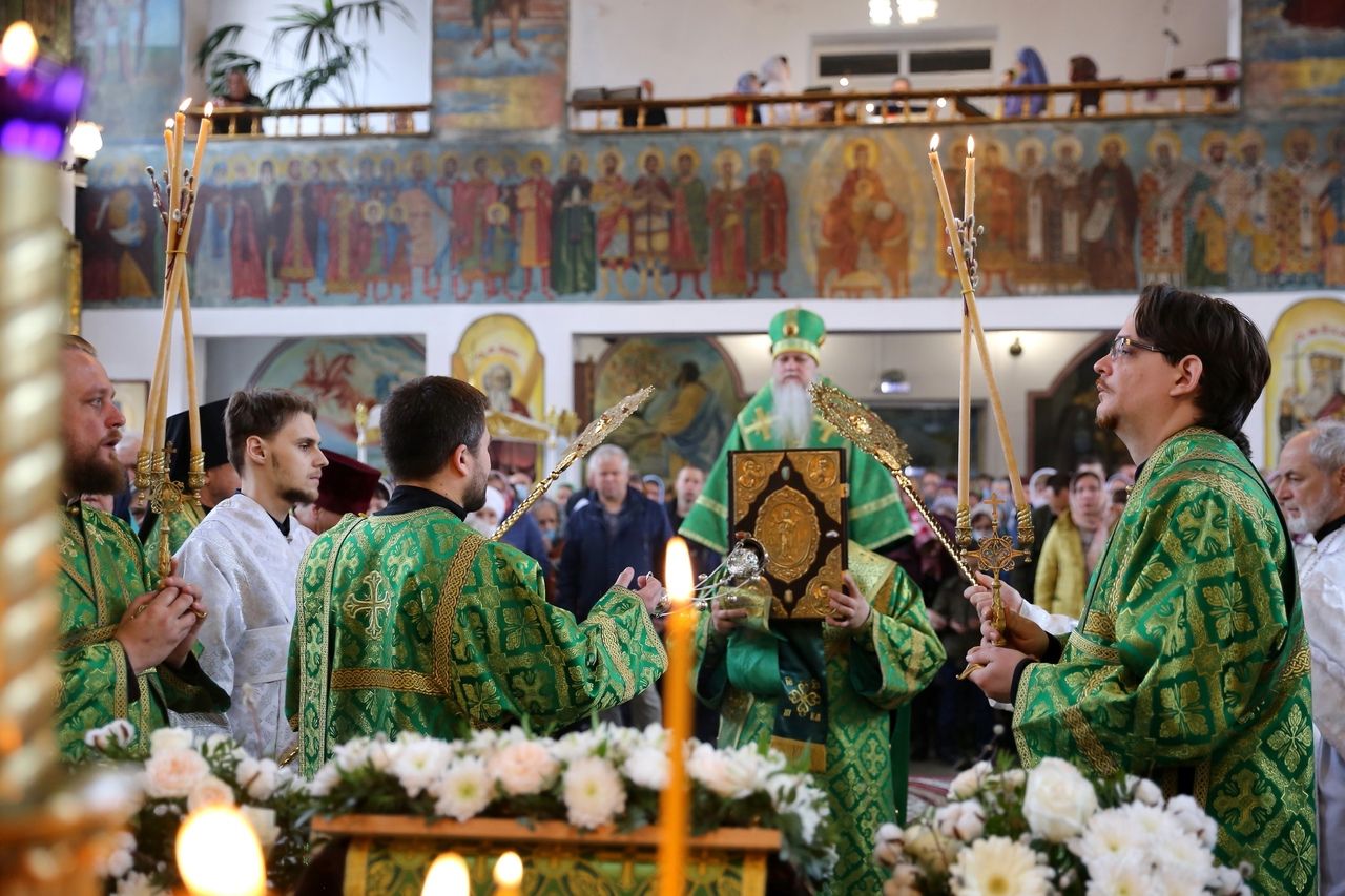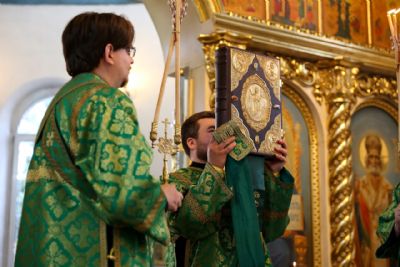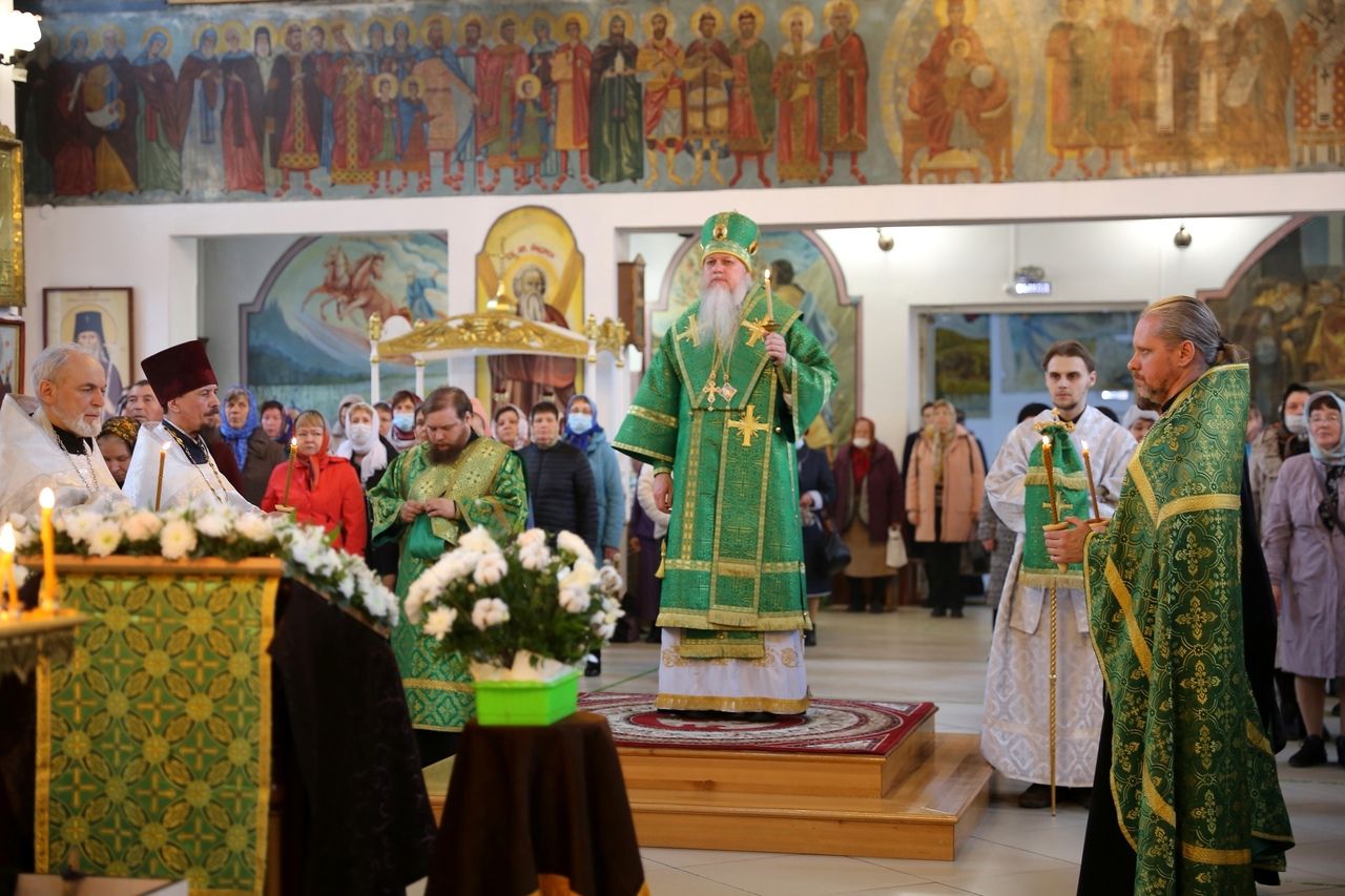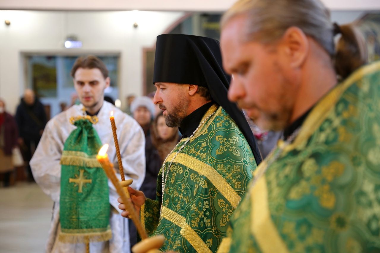 Архипастырю сослужили клирики кафедрального собора. Песнопения исполнял архиерейский хор под управлением Тимофея Протасова, на Литургии также пел детский хор под управлением Марии Захаровой.