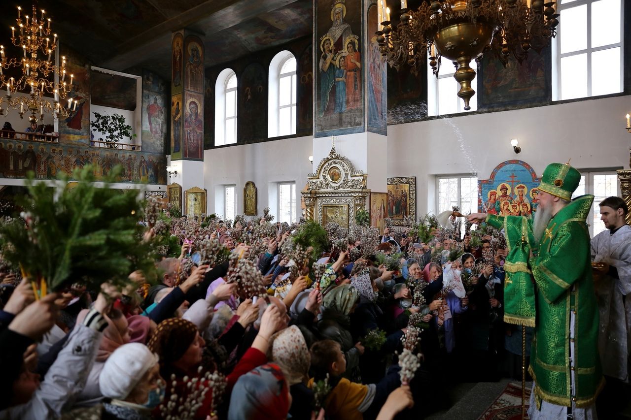 В завершение епископ Феофан освятил принесенные верующими в храм веточки вербы.