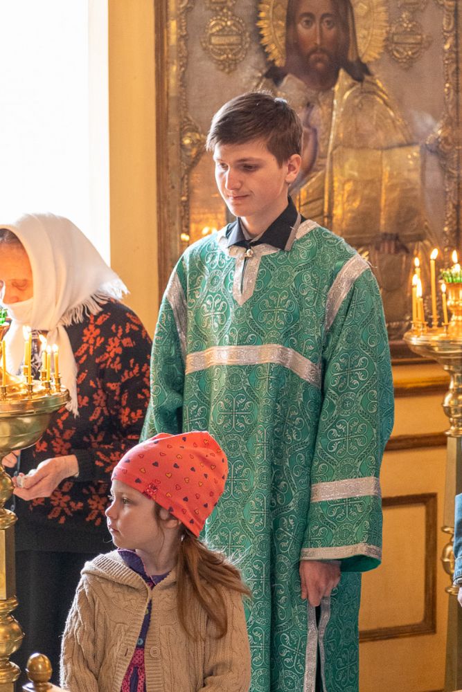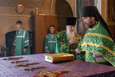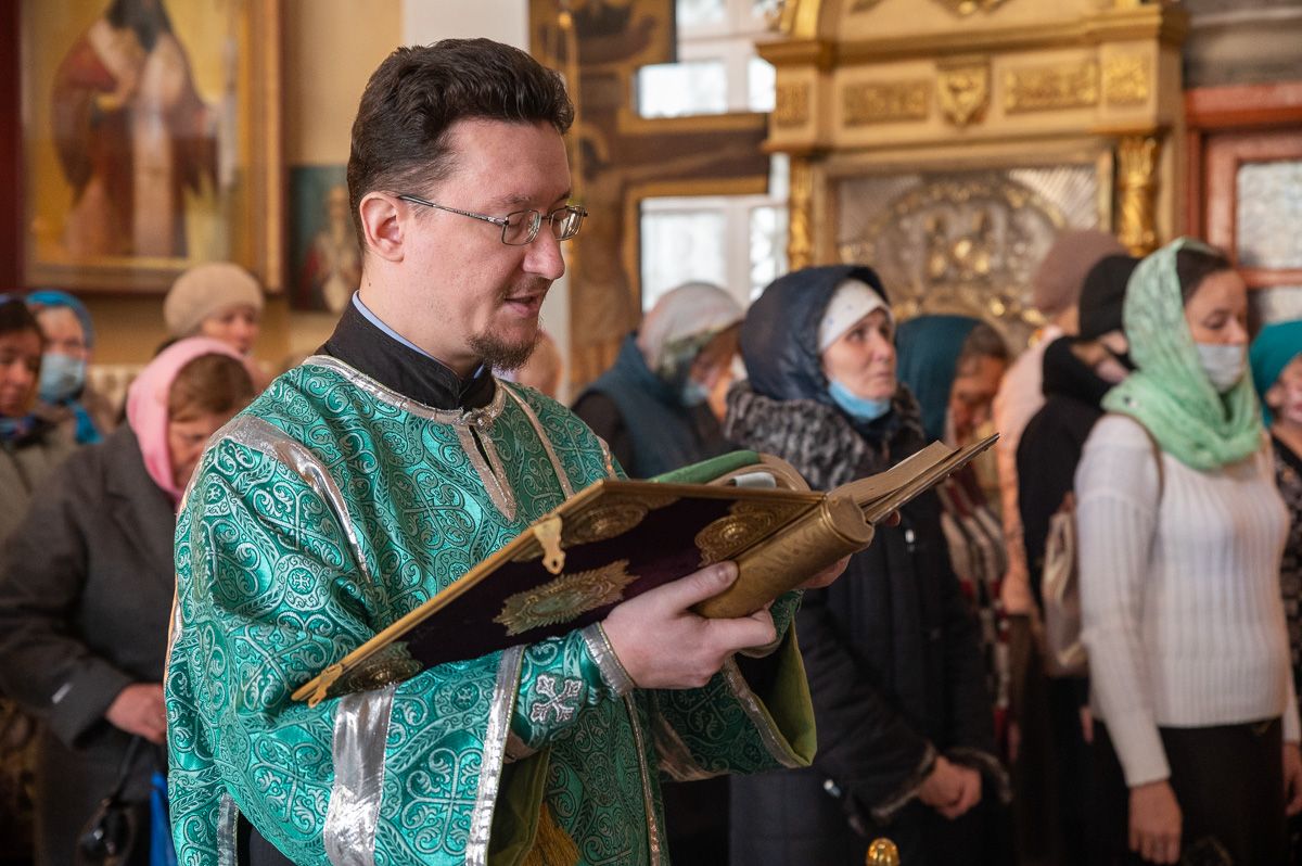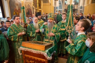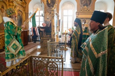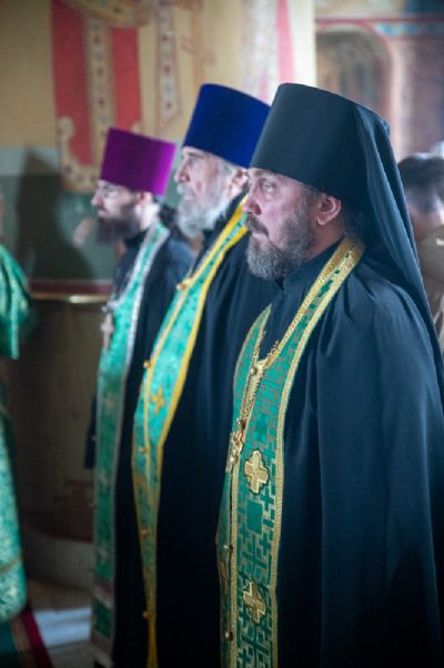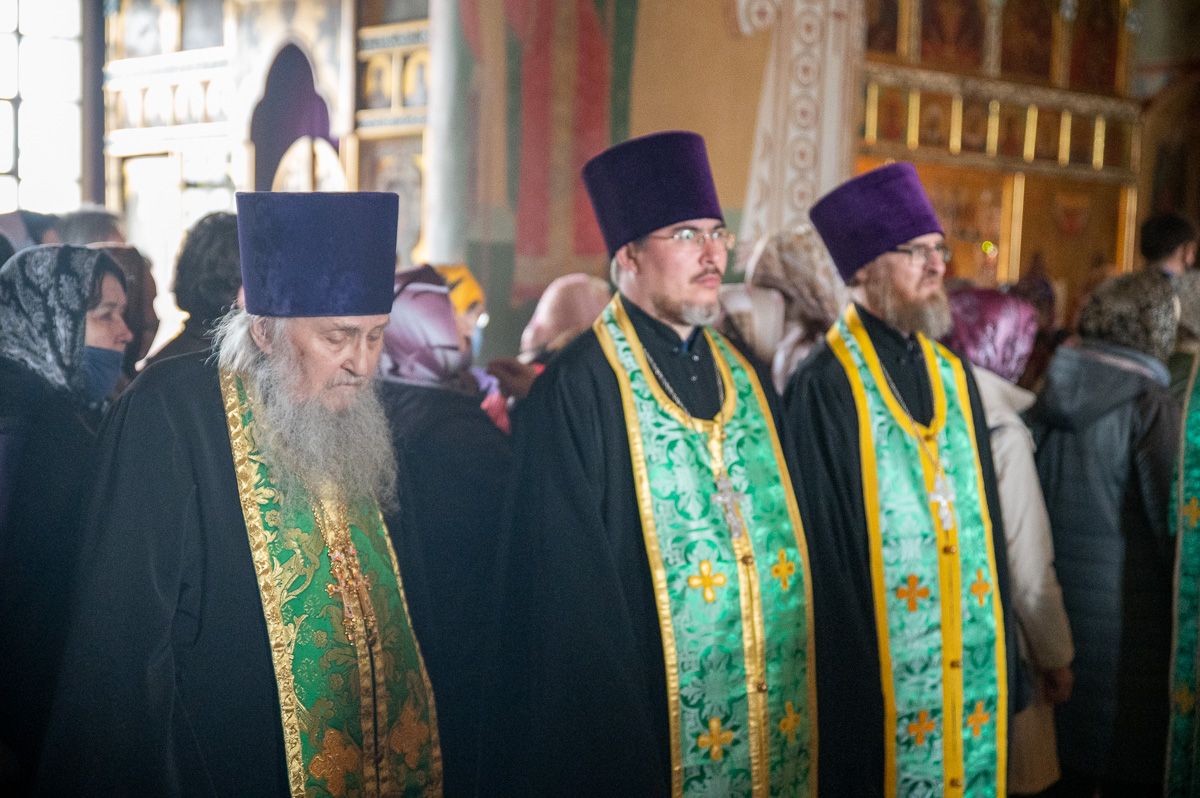 Владыке сослужили секретарь Йошкар-Олинского епархиального управления иеромонах Серафим (Пасанаев), настоятель собора протоиерей Евгений Кутырев, клирики собора и протодиакон Михаил Козловский. Песнопения исполнял хор собора.